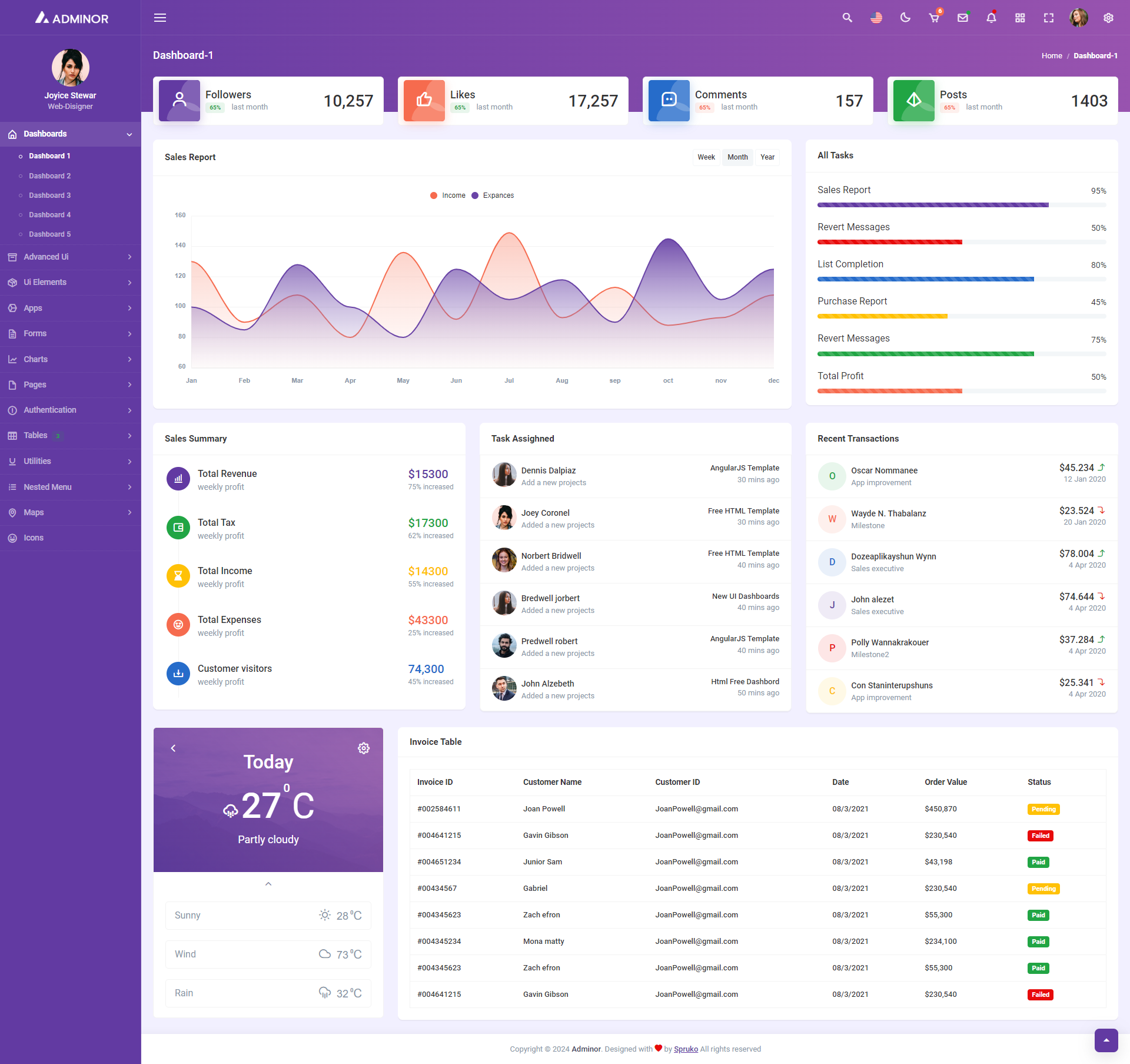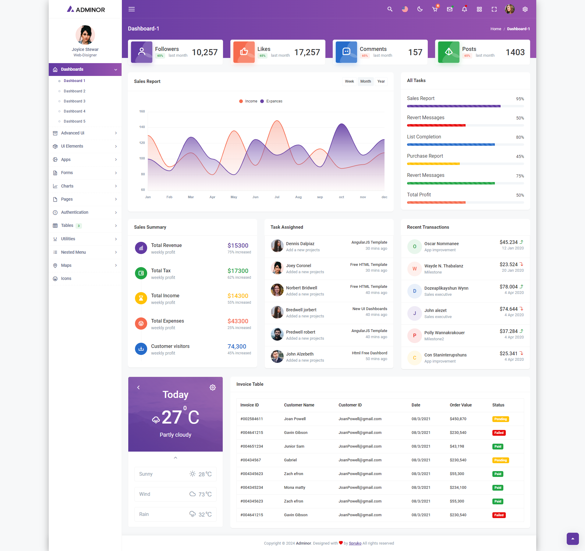 Adminor - Asp.Net Core6 & Mvc5 Premium Bootstrap Admin Template comes with five beautiful dashboard and unlimited color modes, enabling users to choose their preferred mode and customize the admin template according to their preferences.