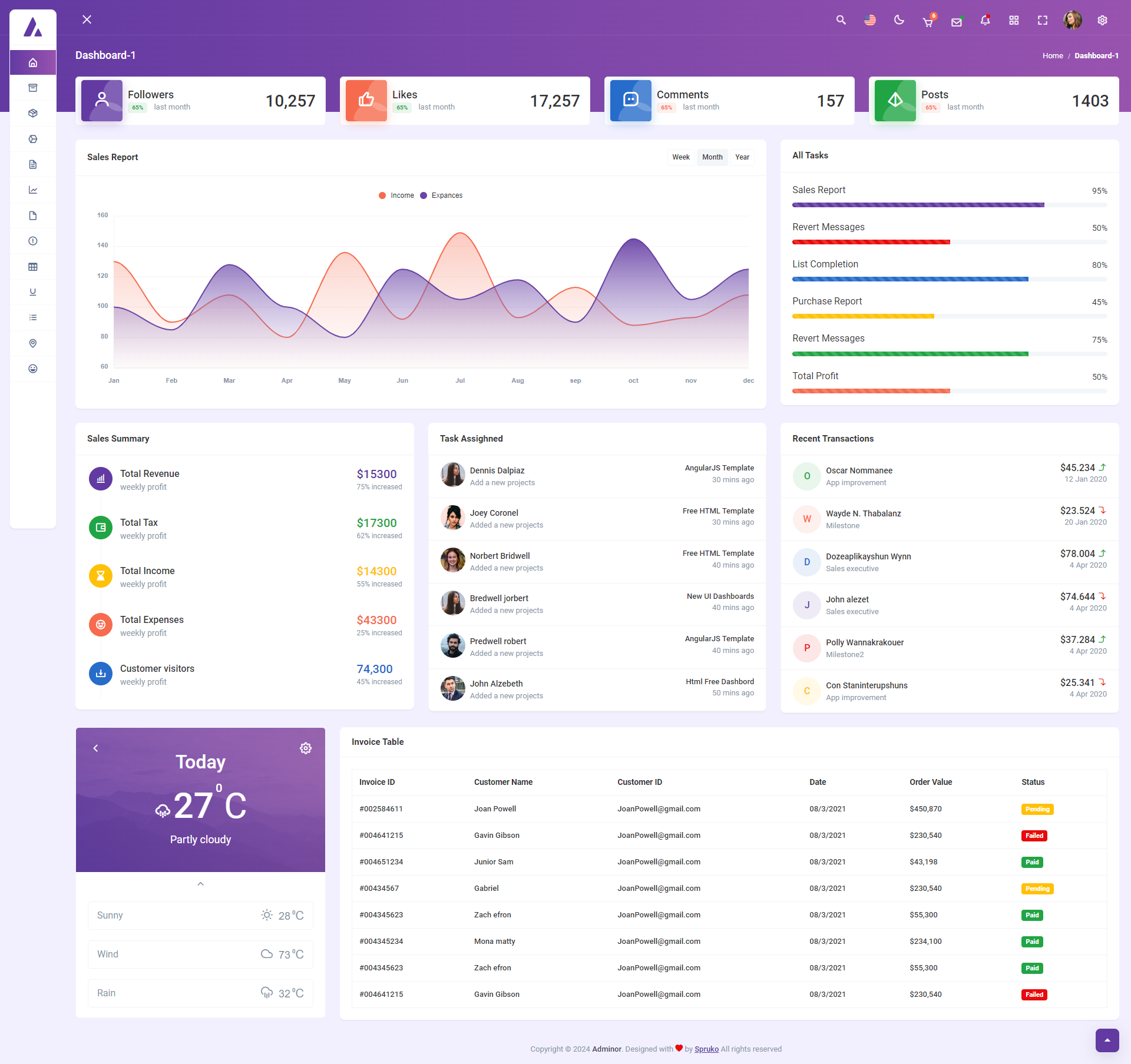Adminor - Asp.Net Core6 & Mvc5 Premium Bootstrap 5 Admin & Dashboard Template boasts essential features such as design quality, compatibility with your front-end framework, responsiveness, ease of customization, comprehensive documentation, and dedicated support. Additionally, it includes integrated plugins and other supplementary features.