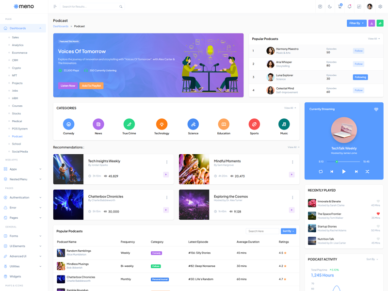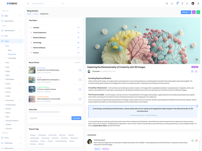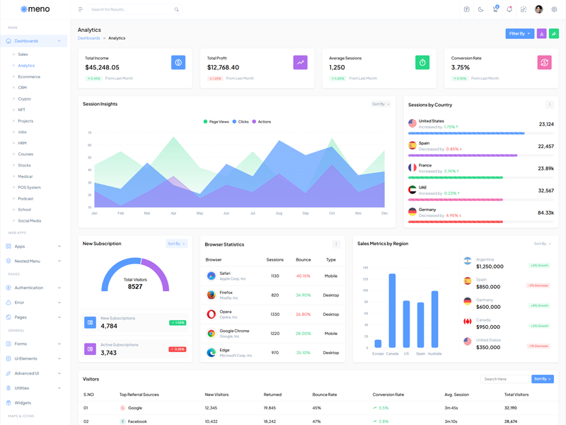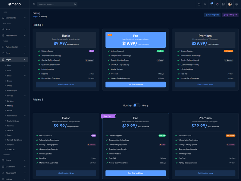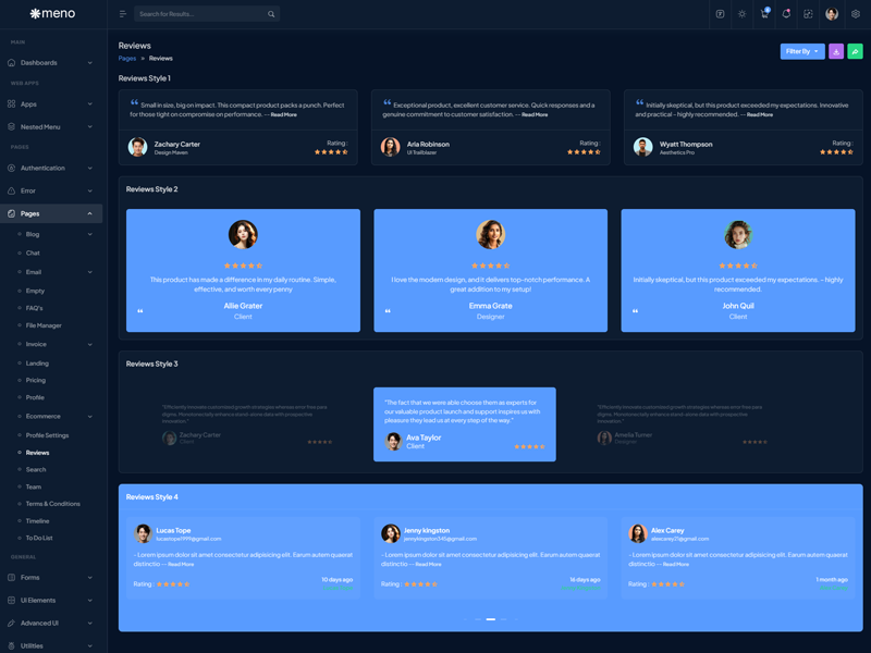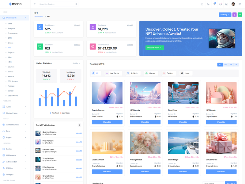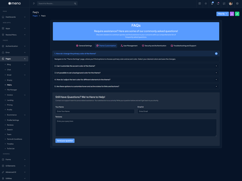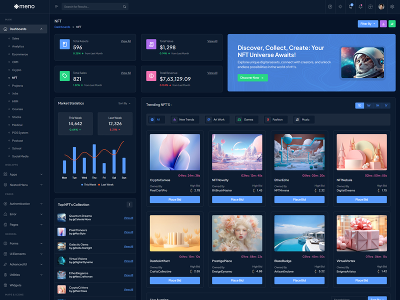 Explore the latest trending features incorporated into the Meno Asp.net Core9 & Mvc5 Admin template, showcasing how we have enhanced and designed our template. When it comes to design, we always keep a close watch on the most trending features.