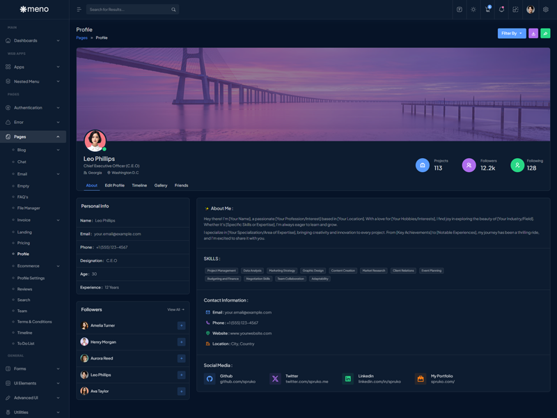 This is the basic information related to “Meno Asp.net Core9 & Mvc5 Bootstrap-5 Dashboard Template”.