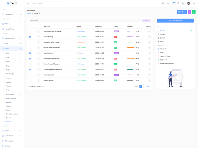 Meno - Asp.net Core9 & Mvc5 Premium Bootstrap 5 Admin & Dashboard Template boasts essential features such as design quality, compatibility with your front-end framework, responsiveness, ease of customization, comprehensive documentation, and dedicated support. Additionally, it includes integrated plugins and other supplementary features.