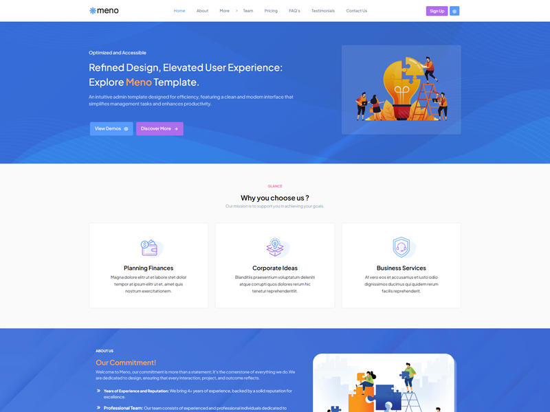 Meno Asp.net Core9 & Mvc5 admin template comes with ready to use features. It has lots of ready-made features saves more time for developers.