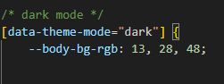 Also Change the following variable colors to the desired theme background accordingly in [data-theme-mode="dark"]