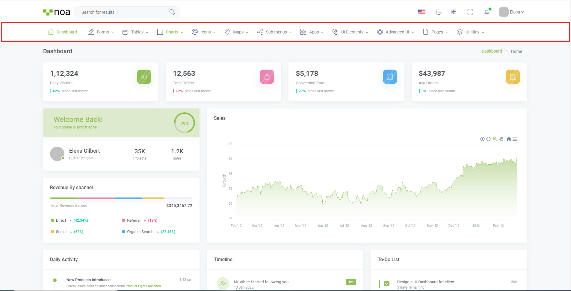 Noa has very clean flat user interface admin Backend design, easy customizable components and widgets.The Template comes with an awesome unique design also we ensure you can easily design admin template.
