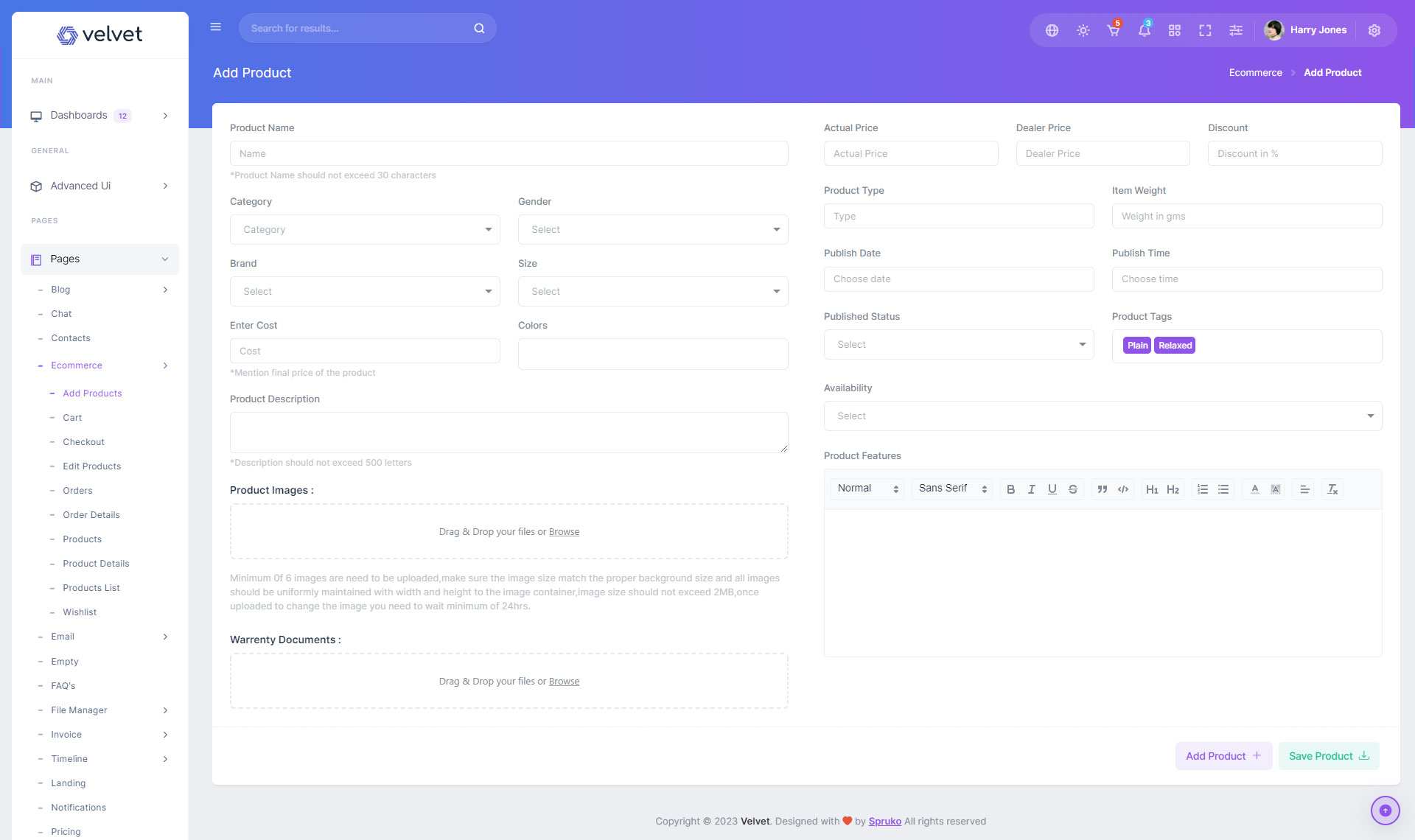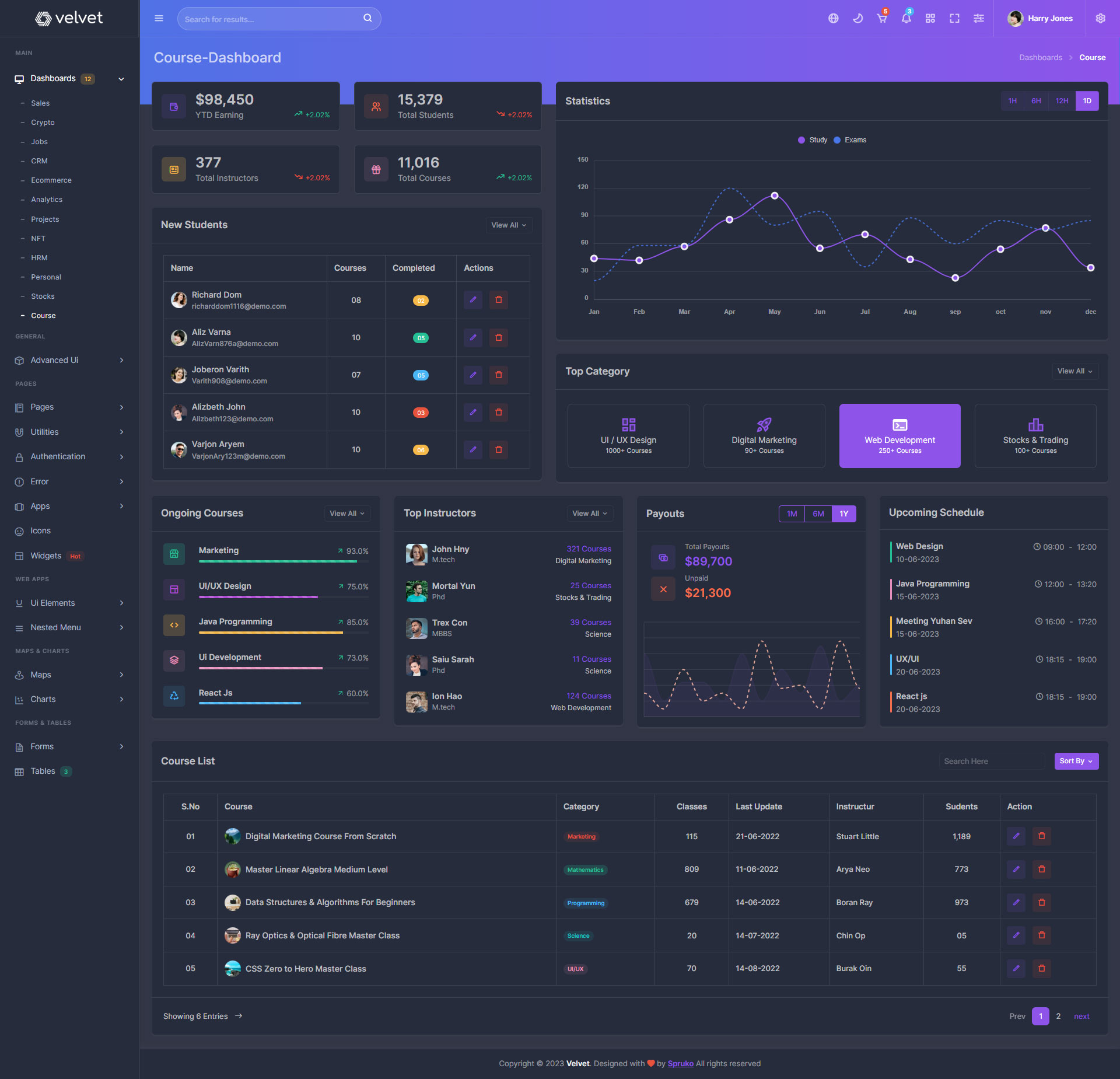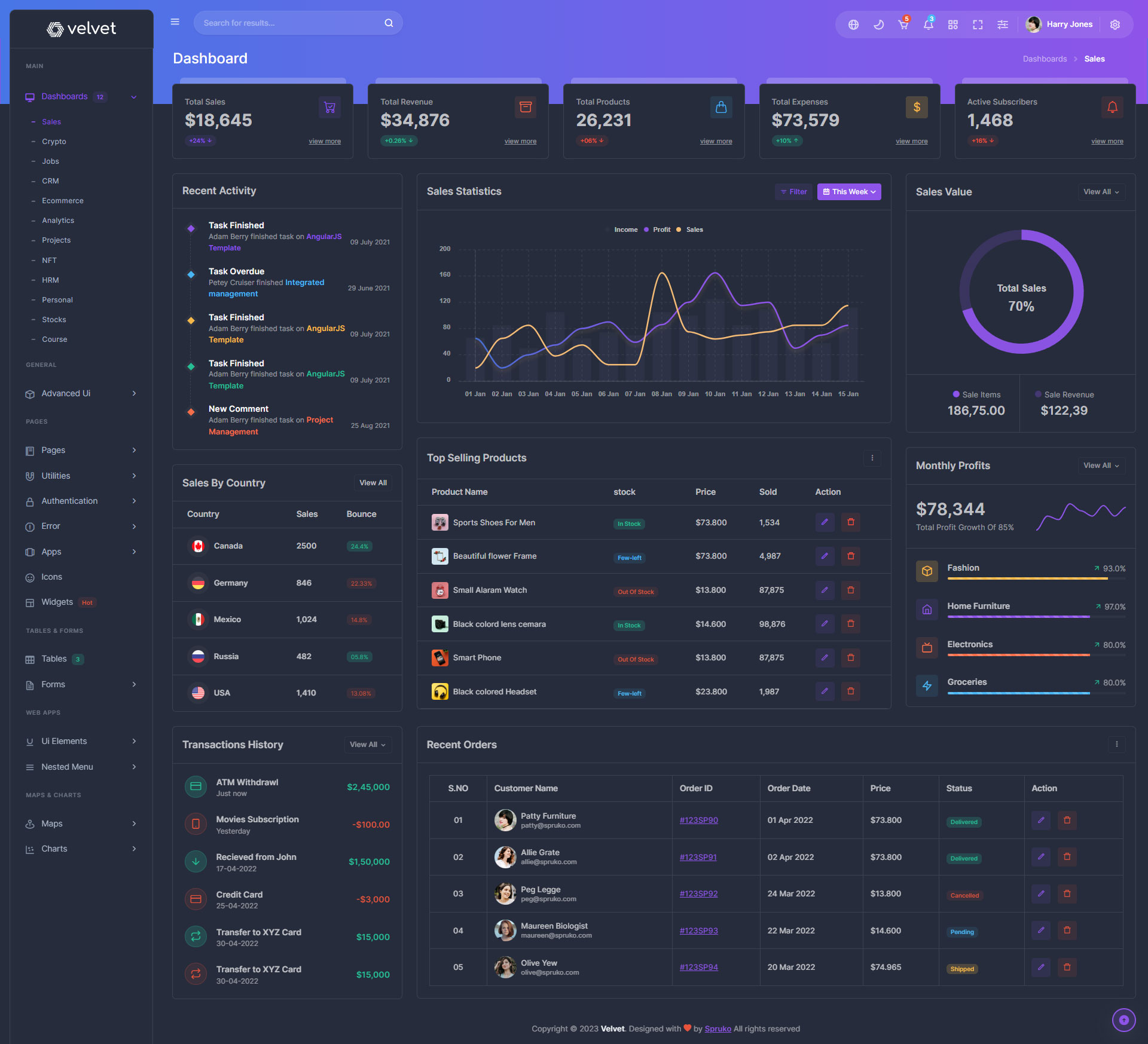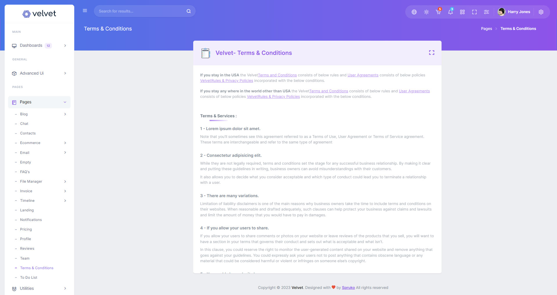 velvet - Asp.Net Core8 & Mvc5 Premium Bootstrap 5 Admin & Dashboard Template boasts essential features such as design quality, compatibility with your front-end framework, responsiveness, ease of customization, comprehensive documentation, and dedicated support. Additionally, it includes integrated plugins and other supplementary features.