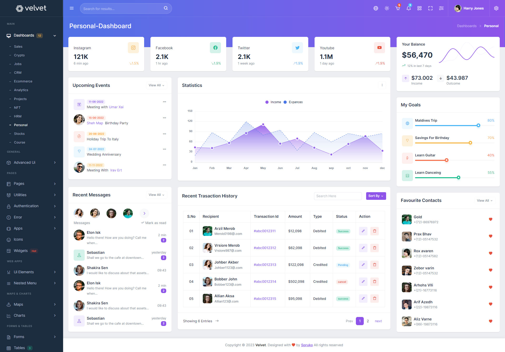 Here, Velvet 12 beautiful dashboards and comes with different types of themes. So that users can choose their best theme and customize the Velvet - Asp.Net Core8 & Mvc5 Premium Bootstrap Admin Template according to their choice.