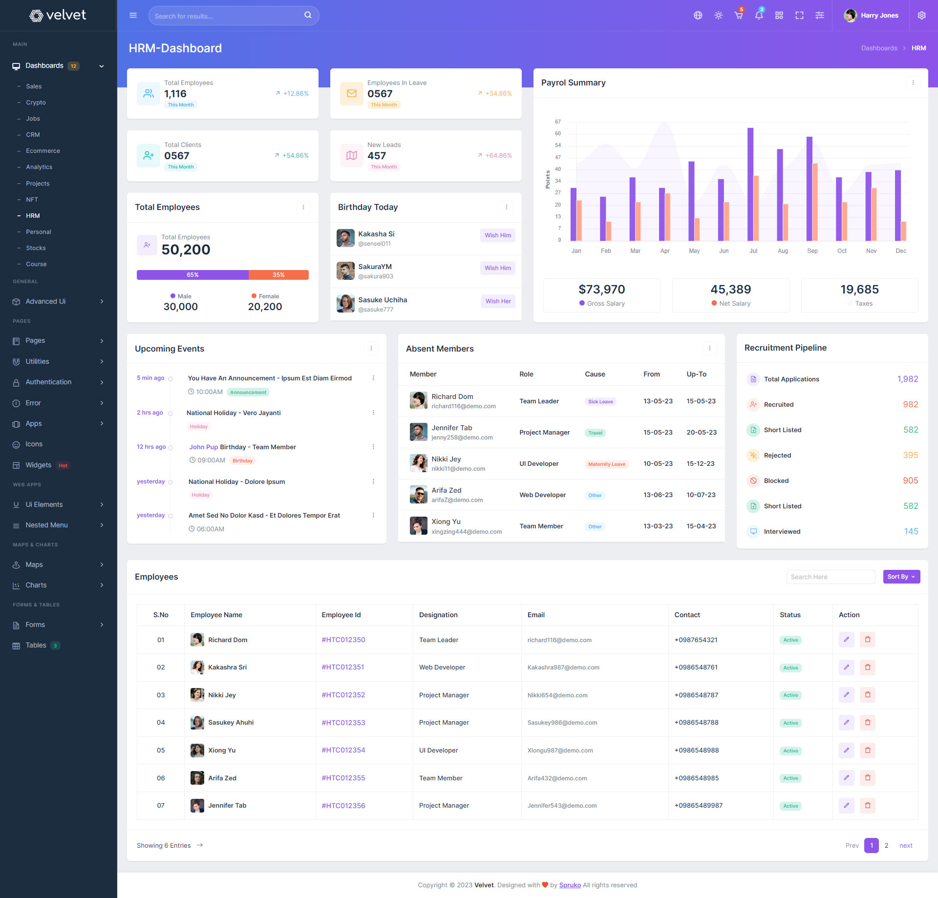 Explore the latest trending features incorporated into the Velvet Asp.Net Core8 & Mvc5 Admin template, showcasing how we have enhanced and designed our template. When it comes to design, we always keep a close watch on the most trending features.