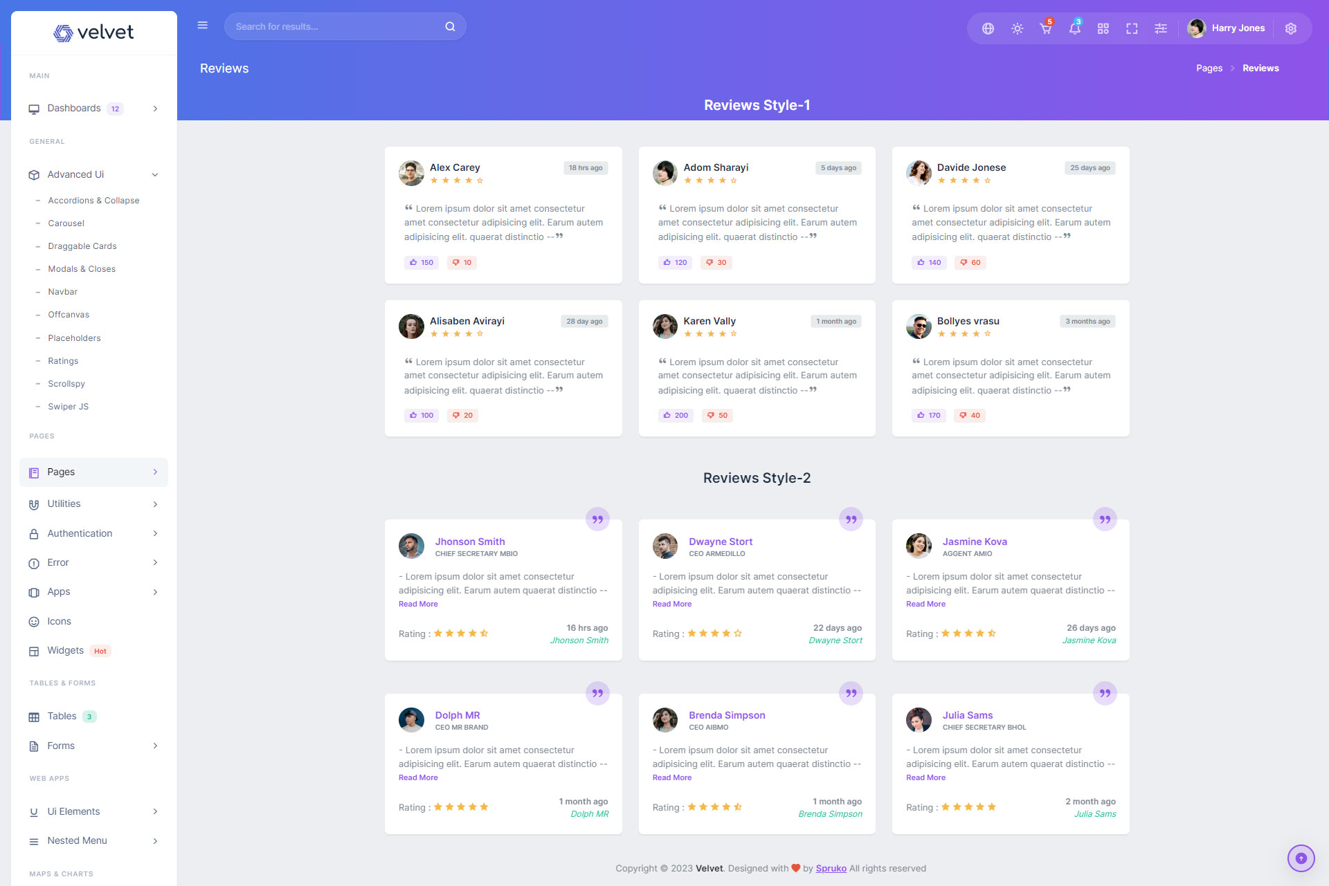 Here are some of the pages in Velvet Asp.Net Core8 & Mvc5 admin template ui design, no need of additional customization required, designed perfectly for ready to use template.