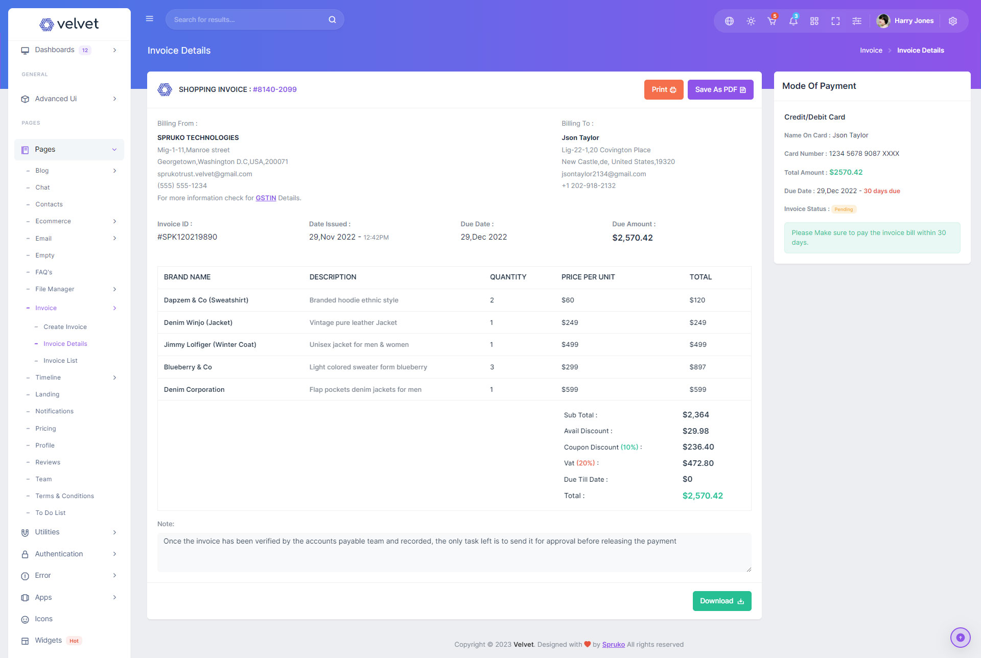 This is the basic information related to “velvet Asp.Net Core8 & Mvc5 Bootstrap-5 Dashboard Template”.