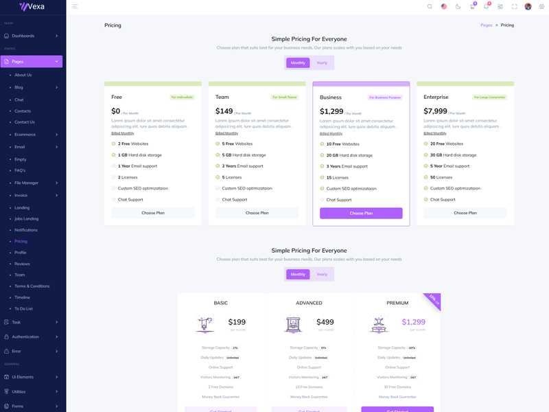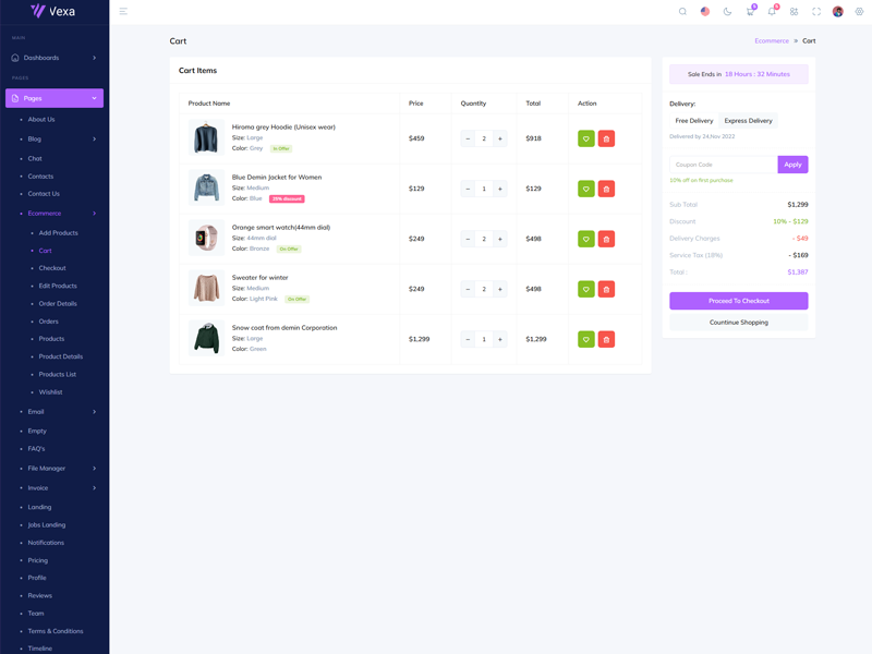 Vexa Asp.Net Core10 & Mvc5 - Premium Admin & Dashboard Template boasts essential features such as design quality, compatibility with your front-end framework, responsiveness, ease of customization, comprehensive documentation, and dedicated support. Additionally, it includes integrated plugins and other supplementary features.