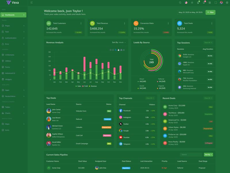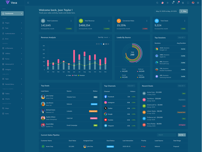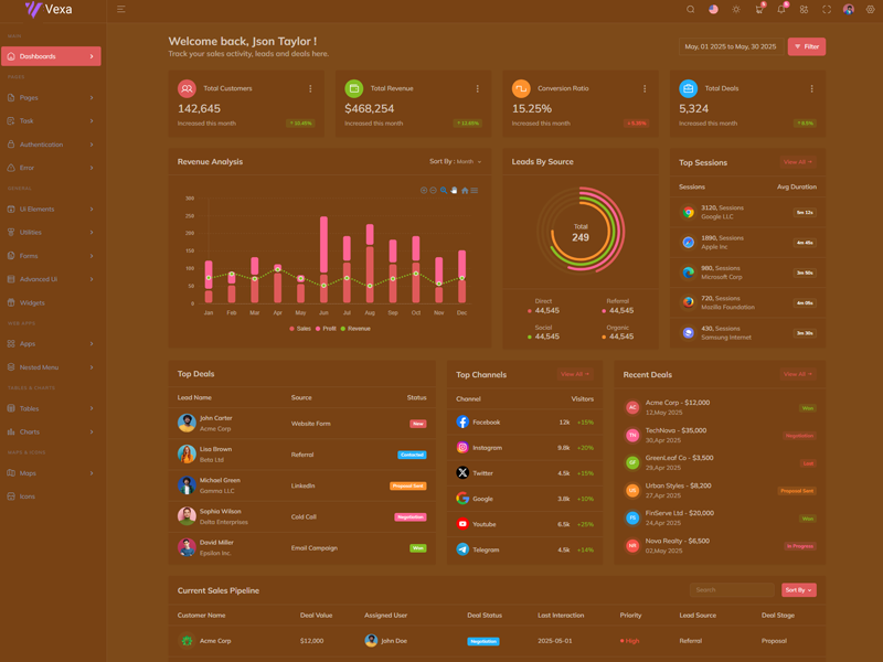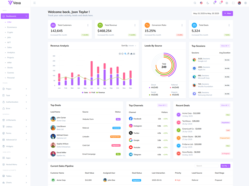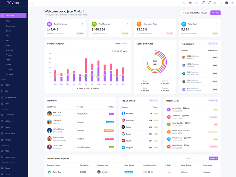 Here’s a quick overview of the Vexa Asp.Net Core10 & Mvc5 Bootstrap 5 Dashboard Template and its key features.