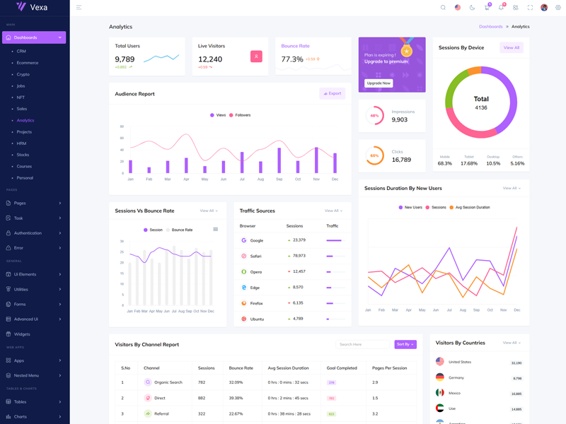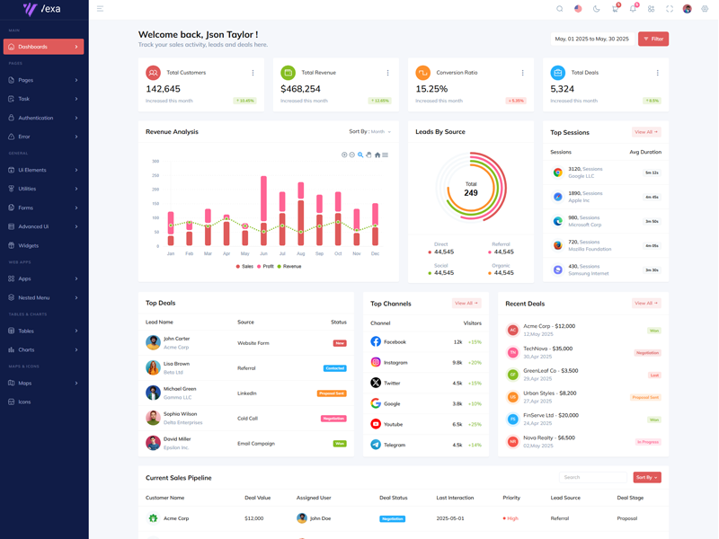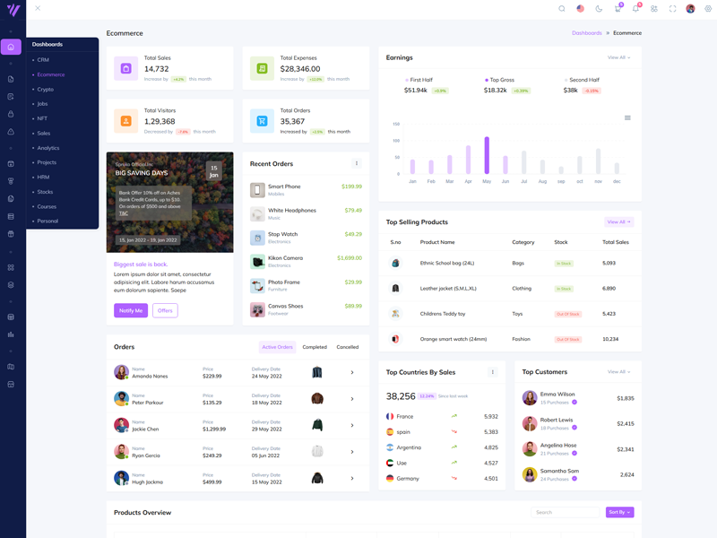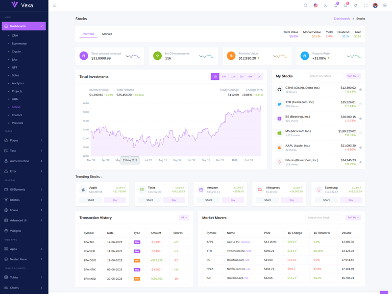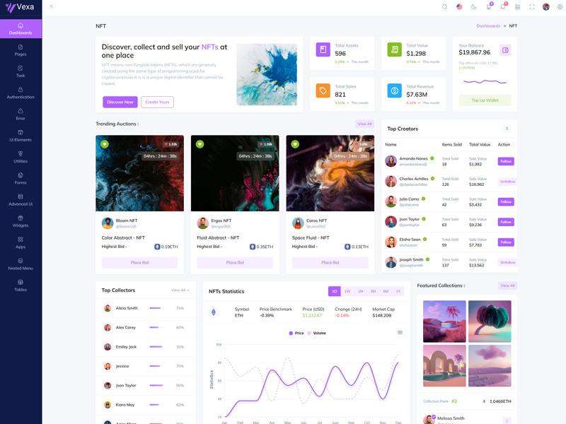 Discover the latest trending features integrated into the Vexa Admin template, highlighting how we’ve enhanced and designed our offering. We consistently monitor the most popular design trends to ensure our template remains cutting-edge.