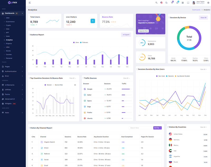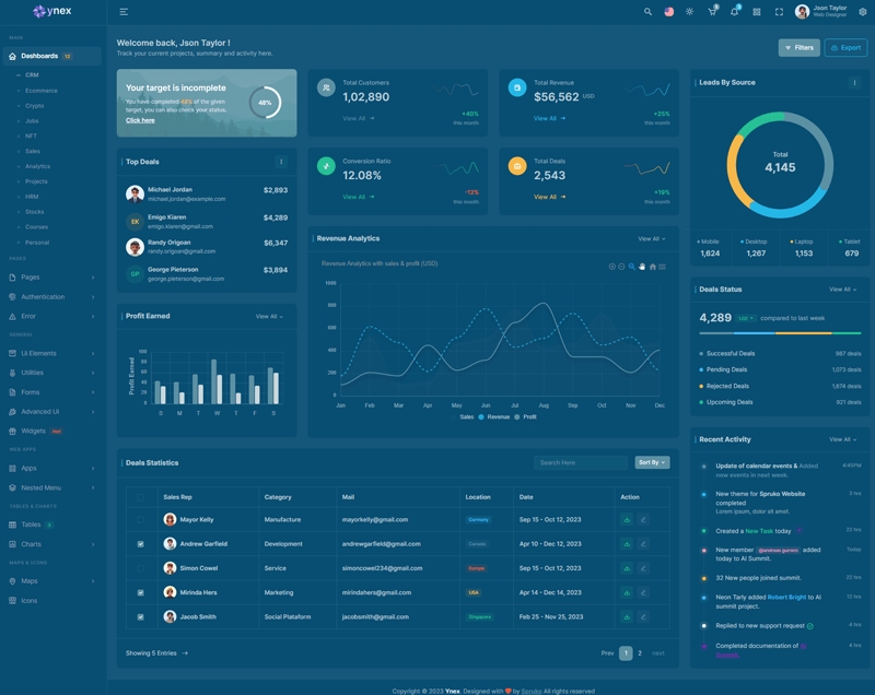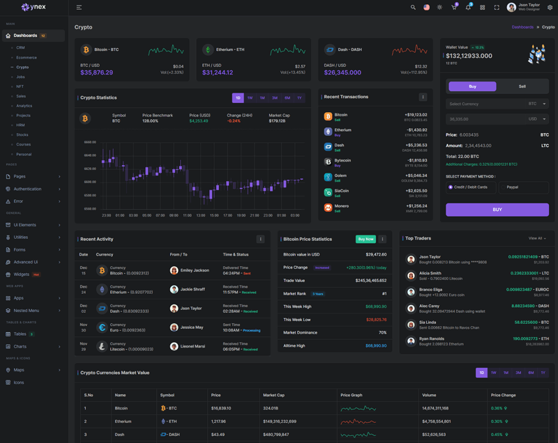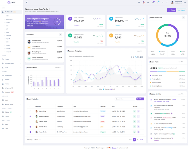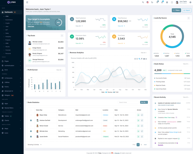 Ynex Asp.Net Core7 & Mvc5 Admin Template Main Features