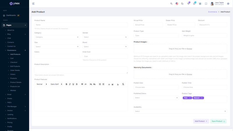 Ynex Asp.Net Core7 & Mvc5 admin template comes with ready to use features. It has lots of ready-made features saves more time for developers.