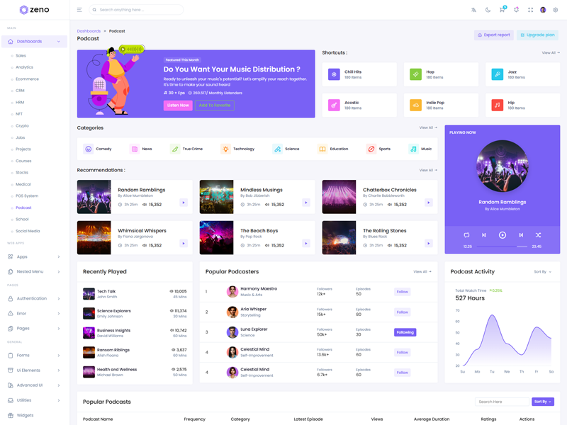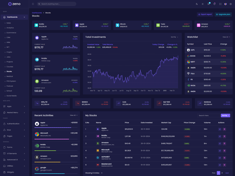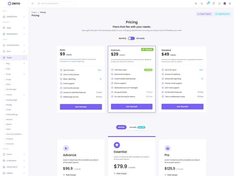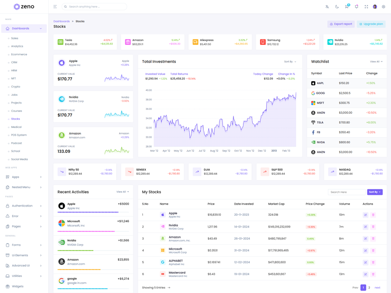 Zeno Asp.Net Core8 & Mvc5 - Premium Bootstrap 5 Admin & Dashboard Template boasts essential features such as design quality, compatibility with your front-end framework, responsiveness, ease of customization, comprehensive documentation, and dedicated support. Additionally, it includes integrated plugins and other supplementary features.