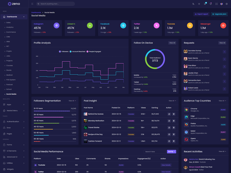 Explore the latest trending features incorporated into the Zeno Asp.Net Core8 & Mvc5 – Bootstrap5 Admin template, showcasing how we have enhanced and designed our template. When it comes to design, we always keep a close watch on the most trending features.