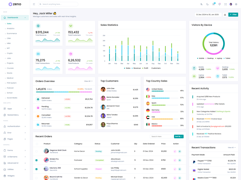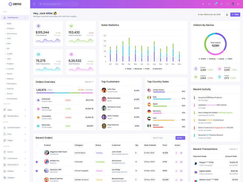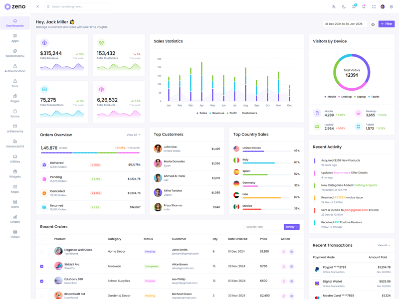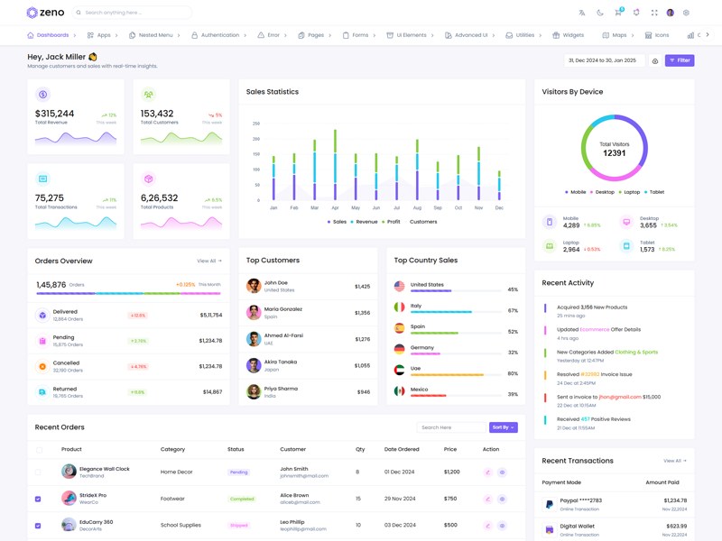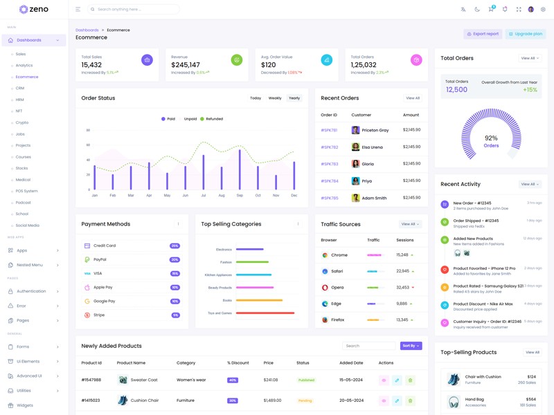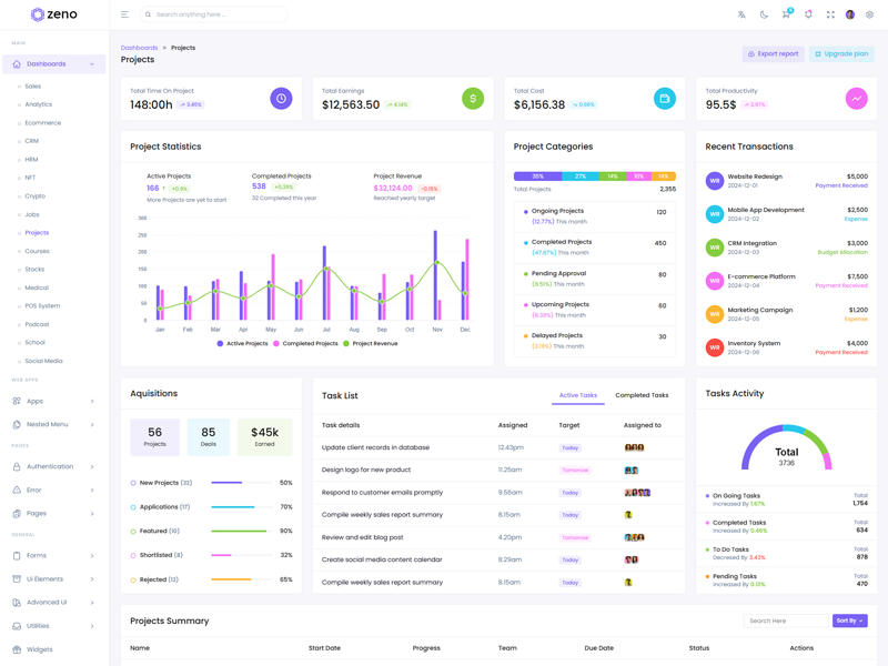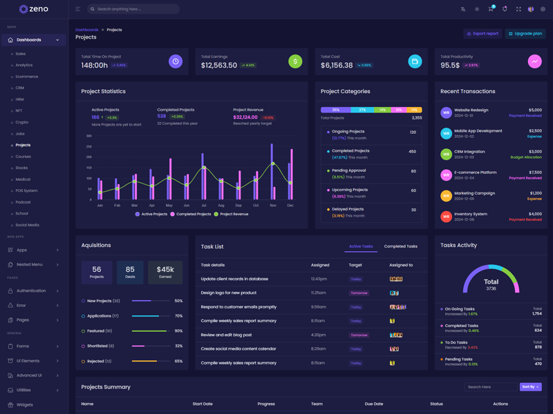 Zeno Asp.Net Core8 & Mvc5 Dashboard template comes with ready to use features. It has lots of ready-made features saves more time for developers.