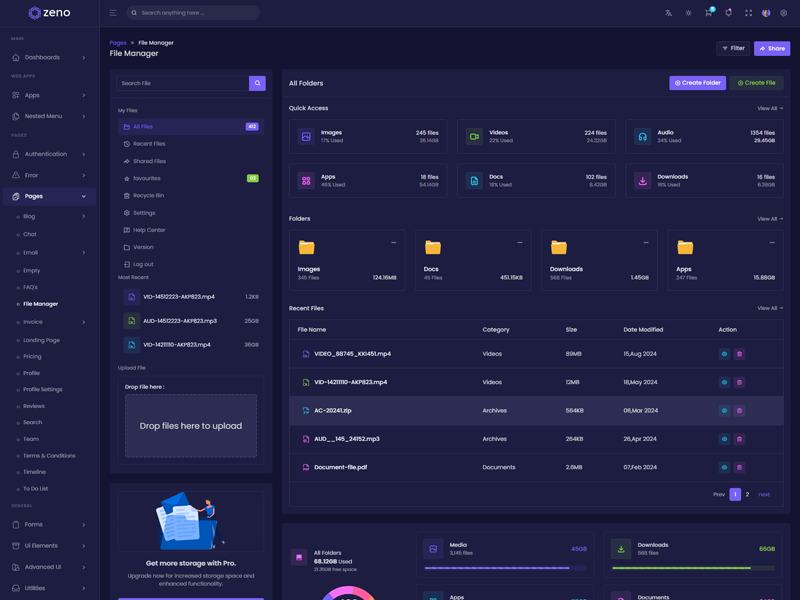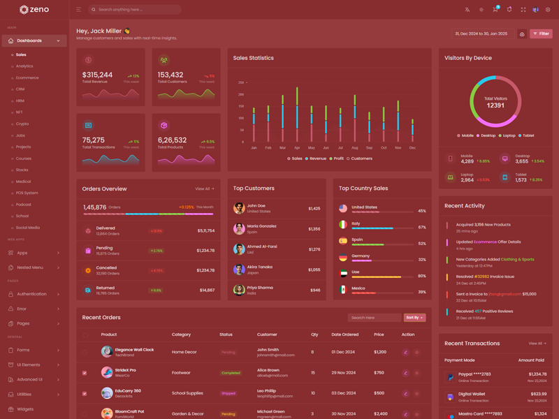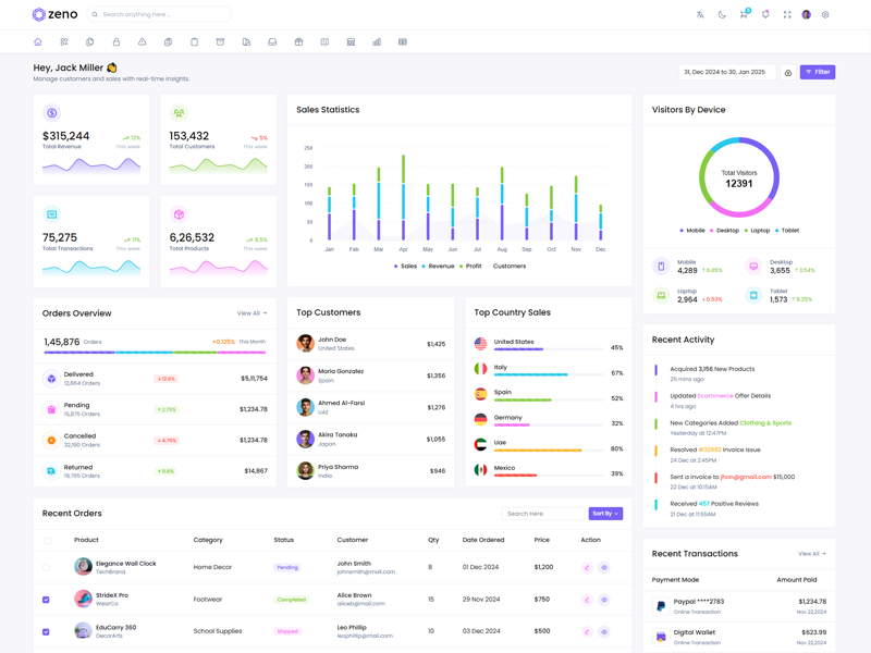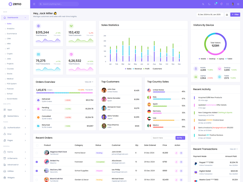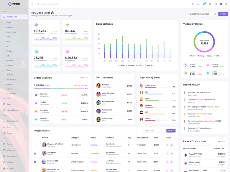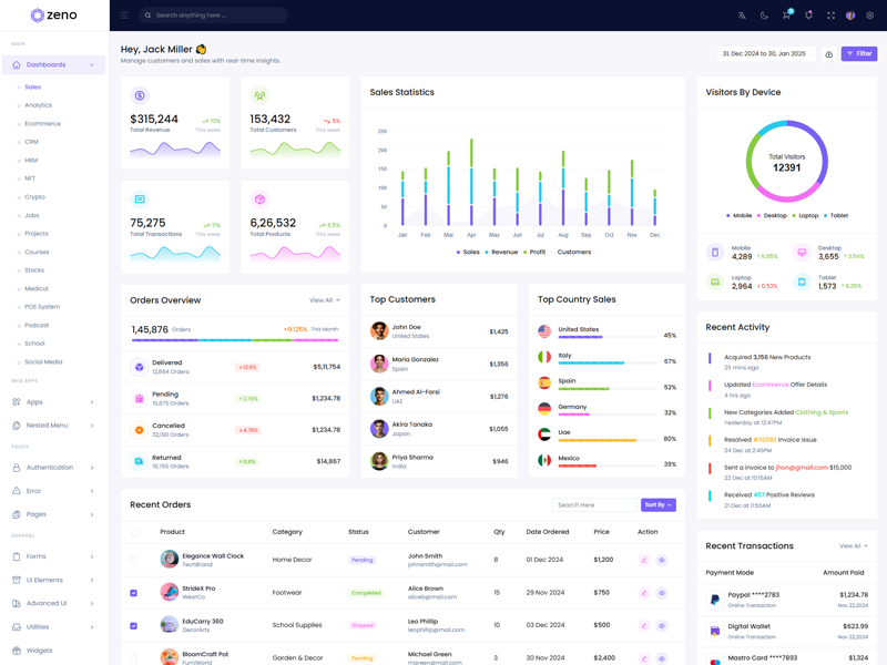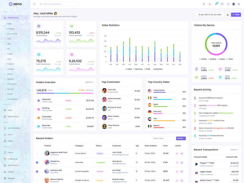 Zeno Asp.Net Core8 & Mvc5 Dashboard template comes with ready to use features. It has lots of ready-made features saves more time for developers.