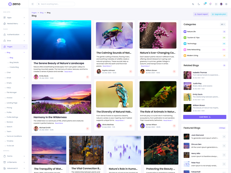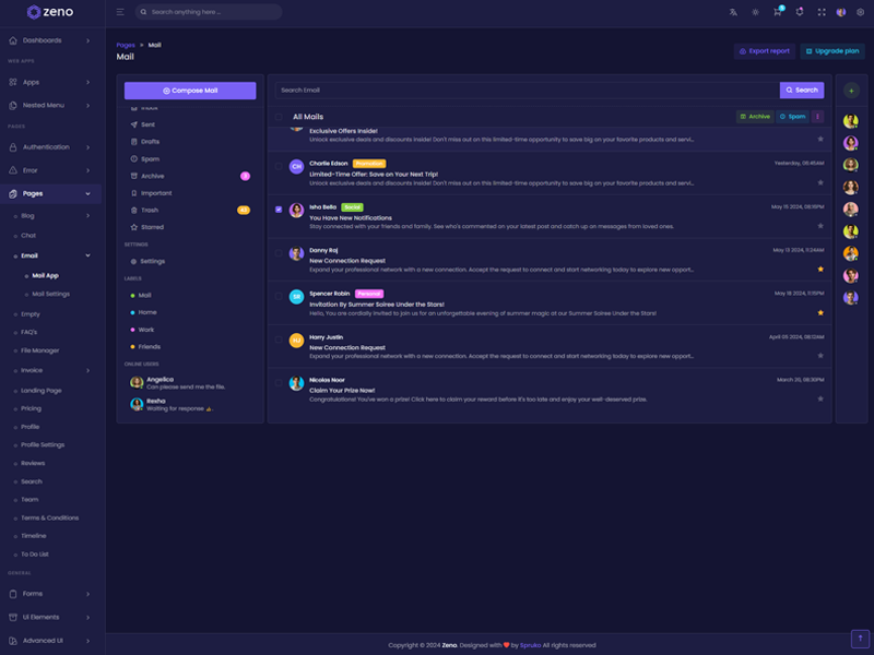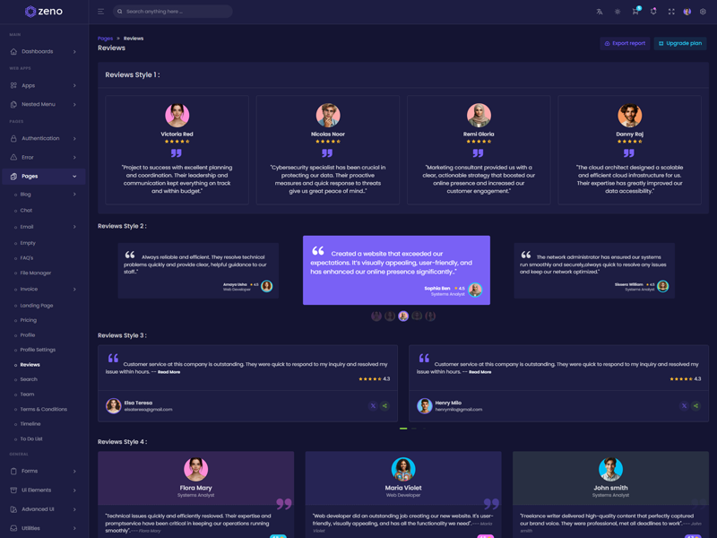 Zeno Asp.Net Core8 & Mvc5 Admin Template Main Features