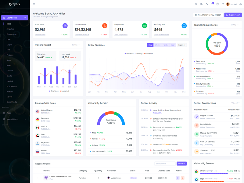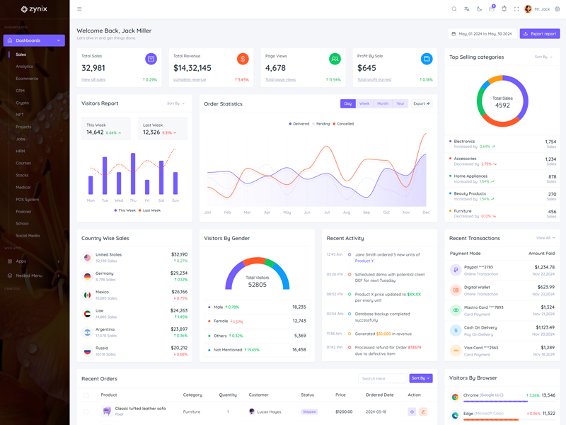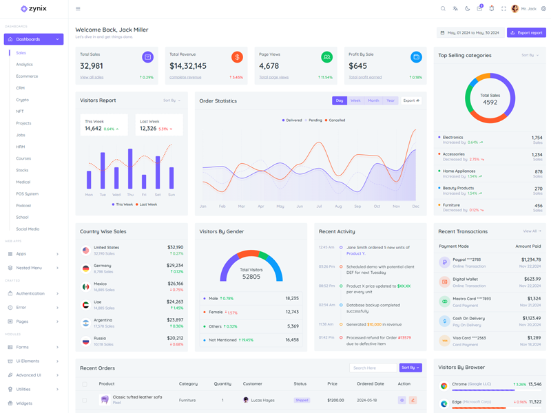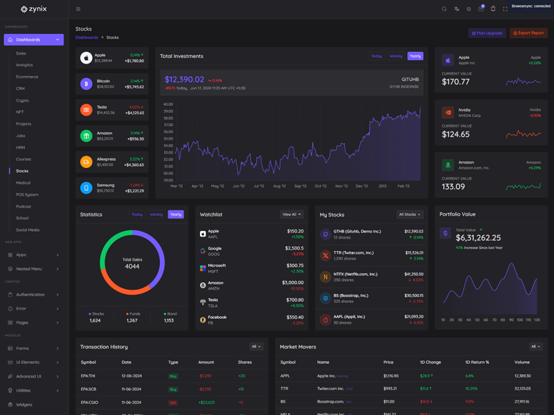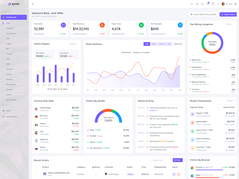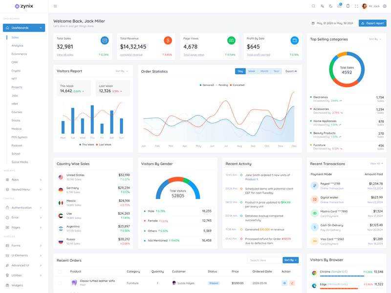 Discover the latest trending features integrated into the Zynix Asp.net Core8 & Mvc5 Admin template, highlighting how we’ve enhanced and designed our offering. We consistently monitor the most popular design trends to ensure our template remains cutting-edge.