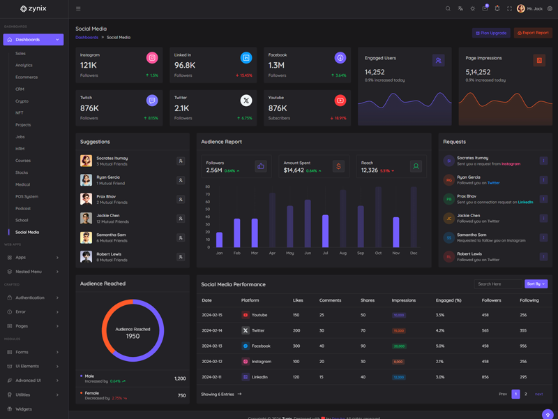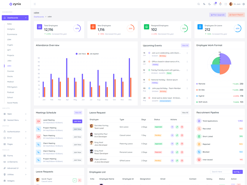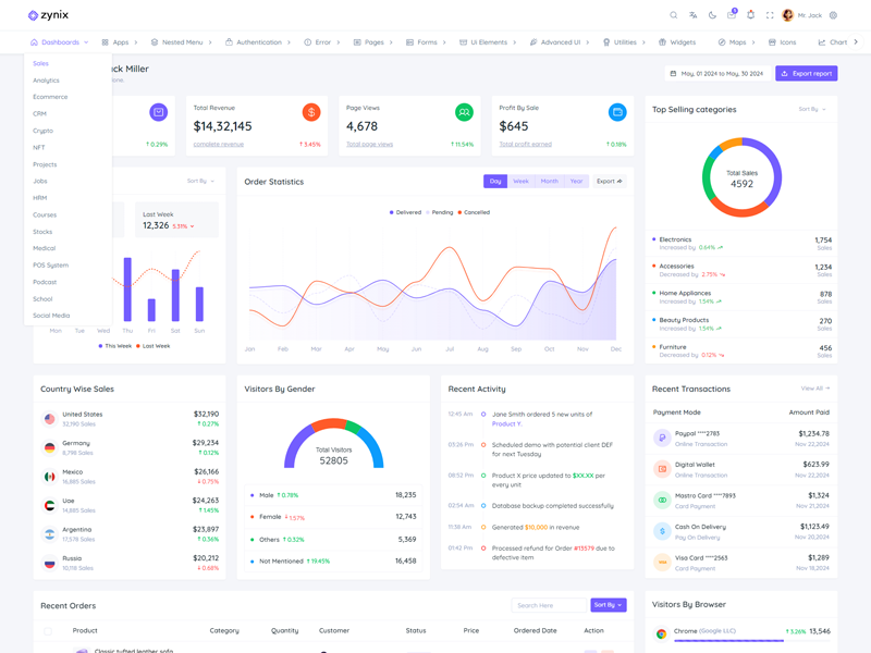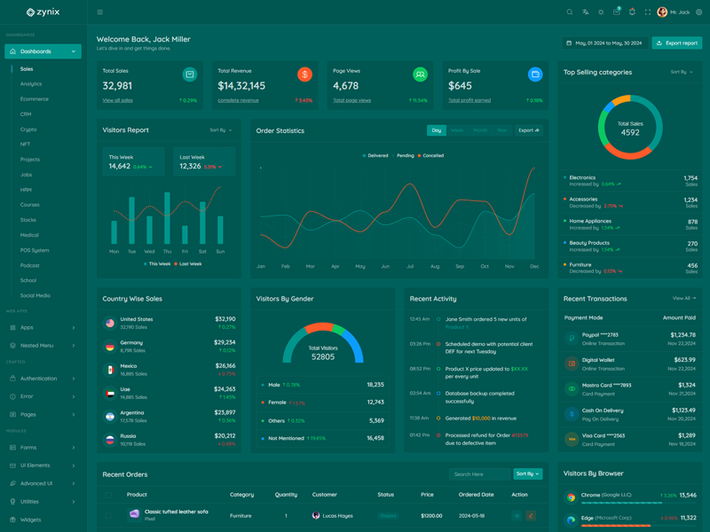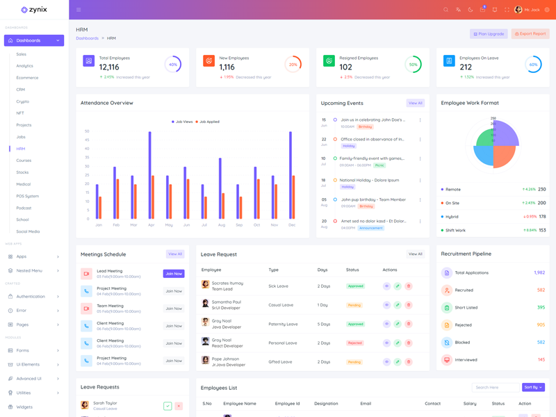 Zynix features 16 stunning dashboards with diverse themes, allowing users to customize the Asp.net Core8 & Mvc5 Premium Bootstrap Admin Template to suit their preferences.