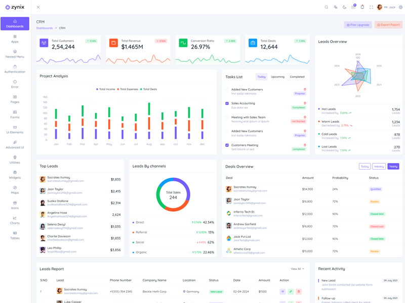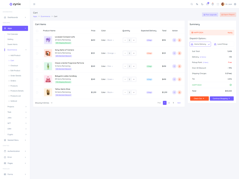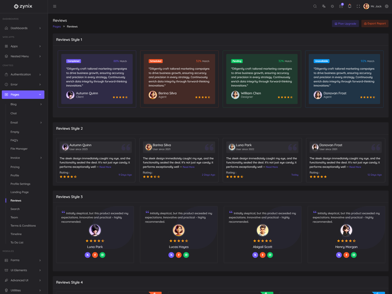 Zynix Asp.net Core8 & Mvc5 Admin Template Main Features