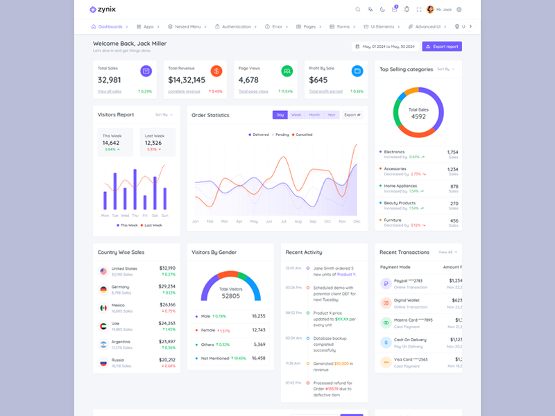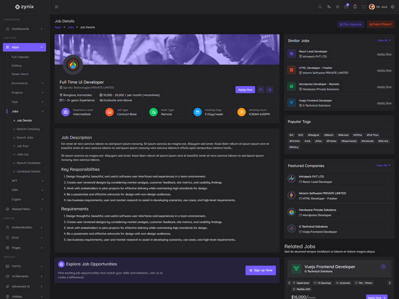The Zynix Asp.net Core8 & Mvc5 admin template comes packed with ready-to-use features, providing numerous pre-built components that save developers valuable time.