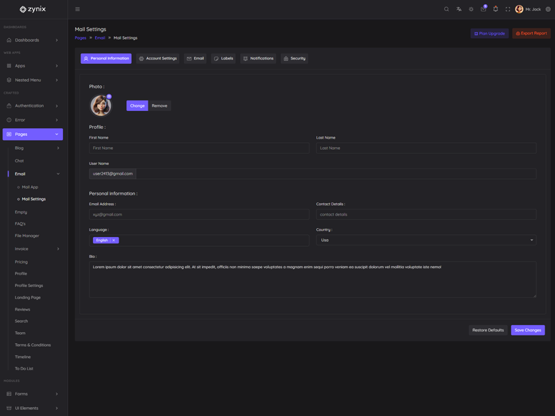 Zynix - Asp.net Core8 & Mvc5 Premium Bootstrap 5 Admin & Dashboard Template offers essential features, including high design quality, compatibility with your front-end framework, responsiveness, ease of customization, comprehensive documentation, and dedicated support. Additionally, it comes with integrated plugins and various supplementary features.