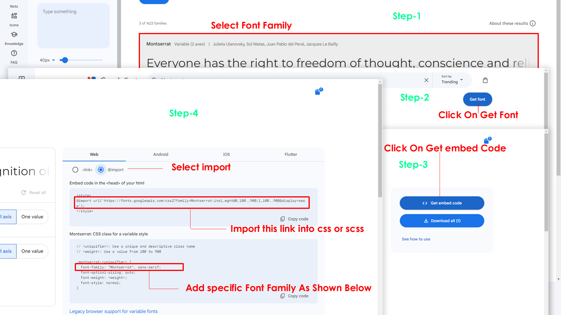 And add the Your Selected font-family in tailwind.config.js file inplace