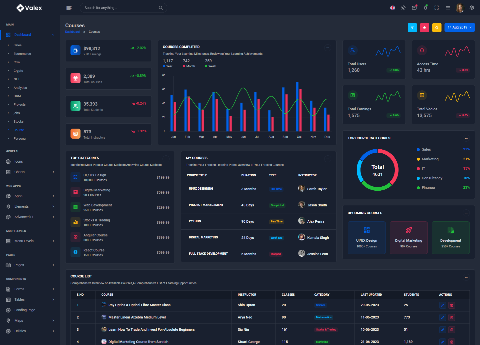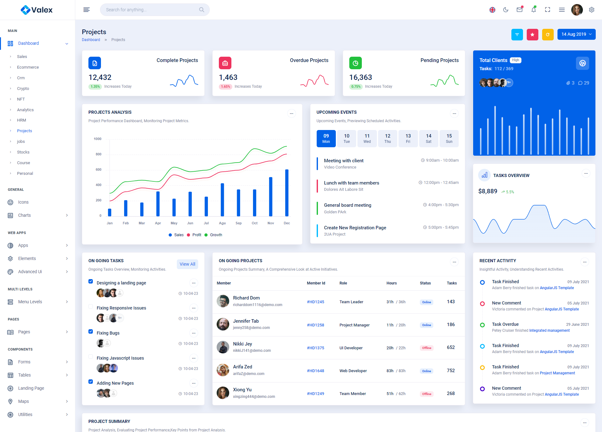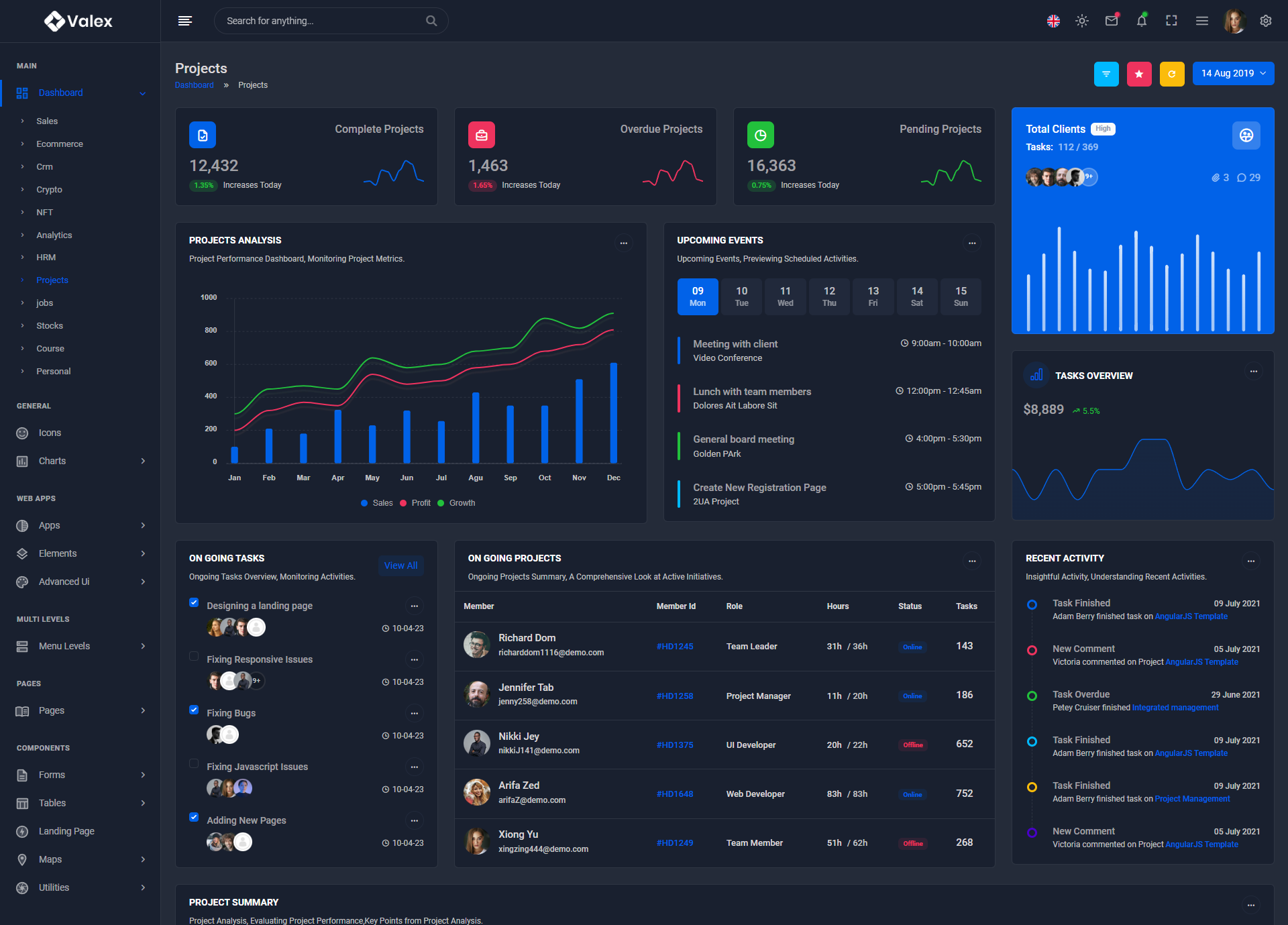 Valex Asp.Net Core8 & Mvc5 Tailwind CSS Admin Template comes with ready to use features. It has lots of ready-made features saves more time for developers.