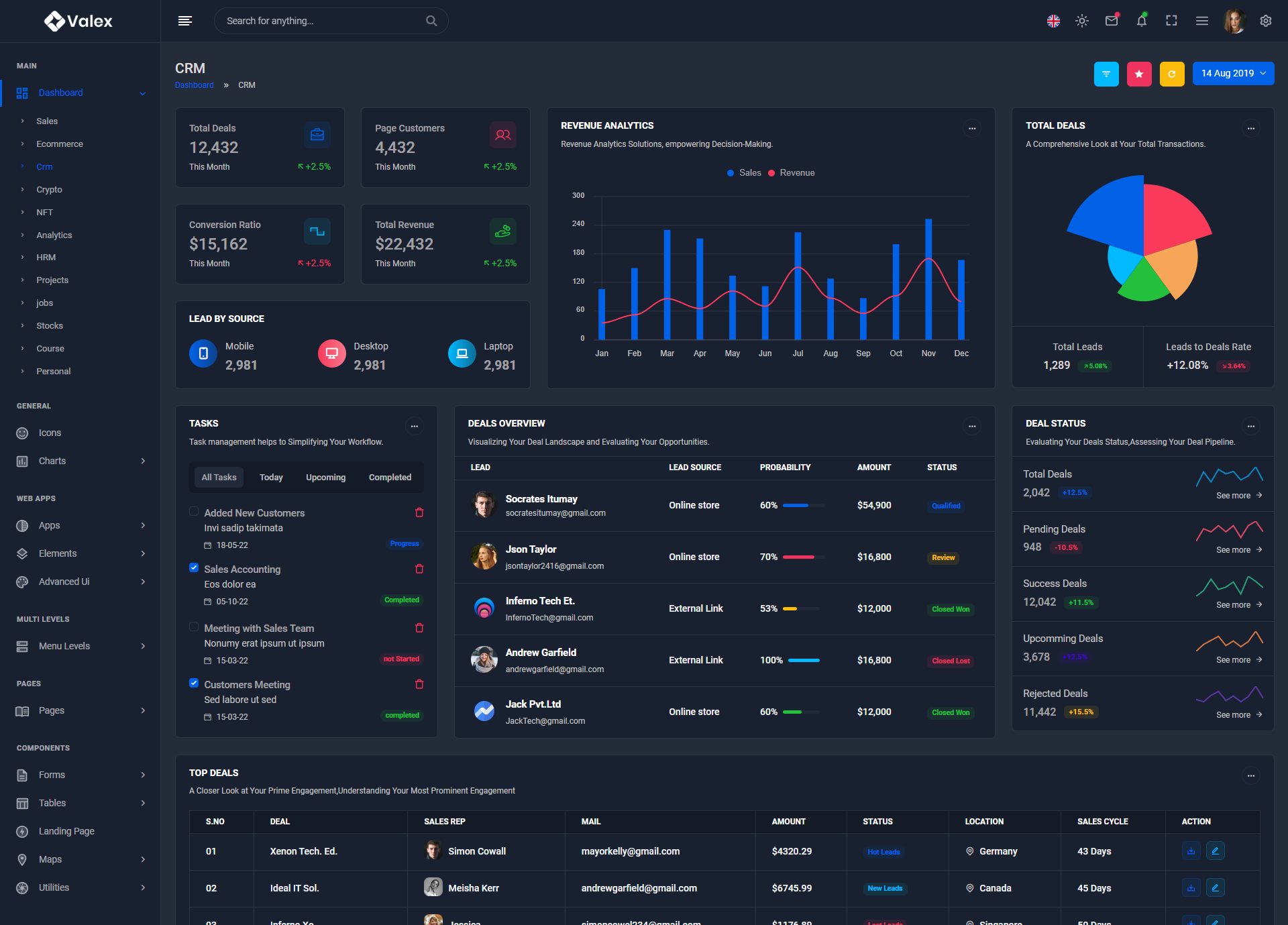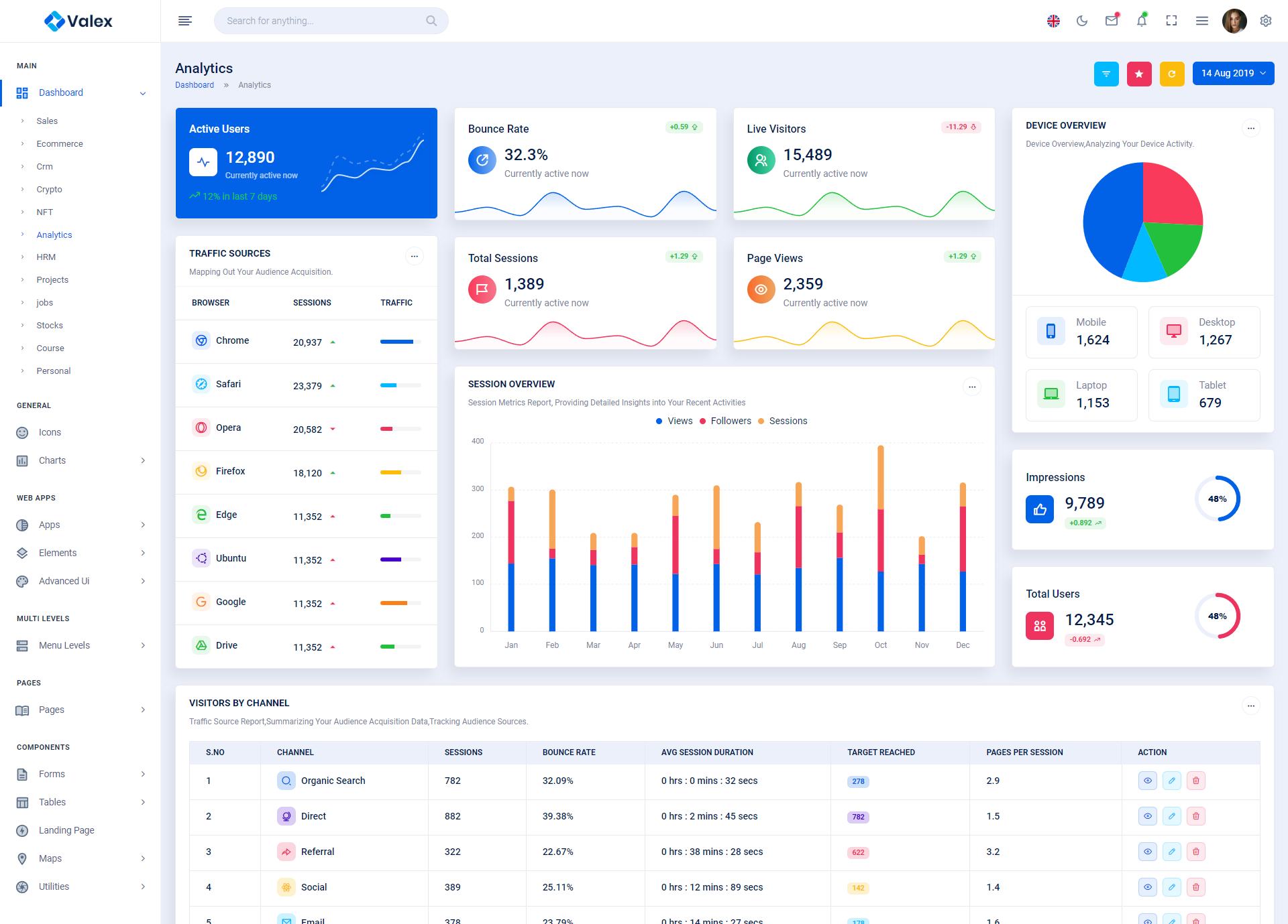 Valex - Asp.Net Core8 & Mvc5 Tailwind CSS Admin & Dashboard Template comes with 12 beautiful dashboards and unlimited color modes, enabling users to choose their preferred mode and customize the admin template according to their preferences.