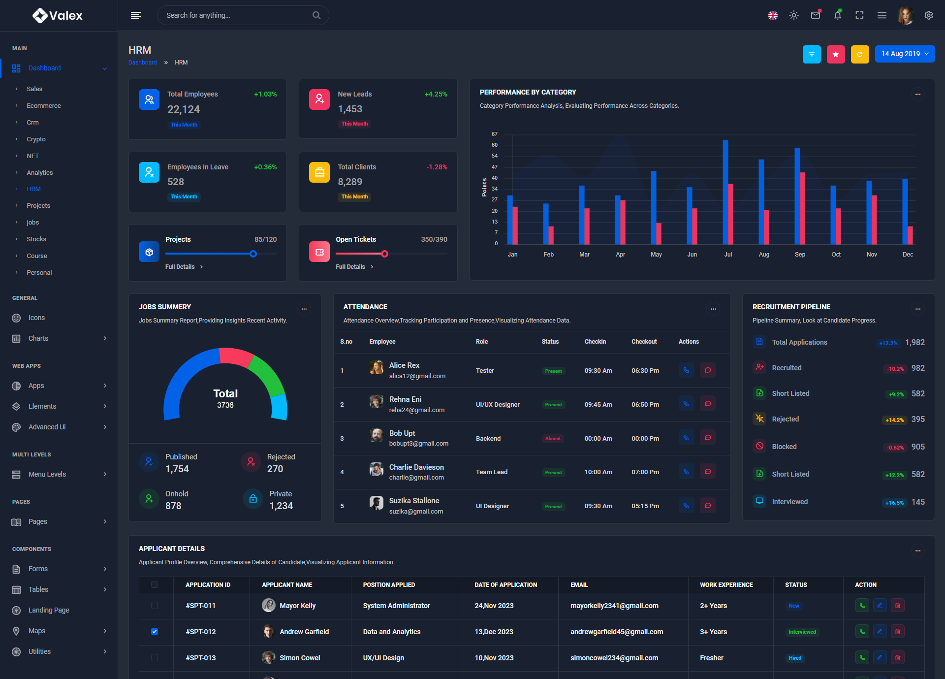 Valex Asp.Net Core8 & Mvc5 Tailwind CSS Admin Template Main Features