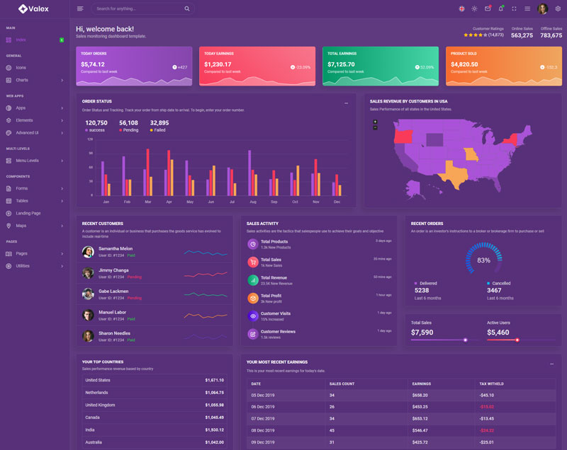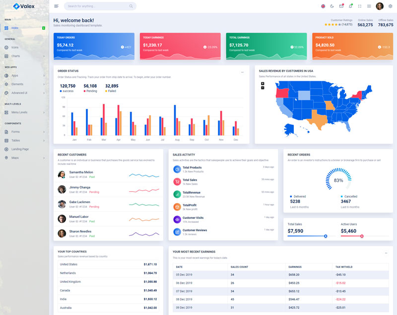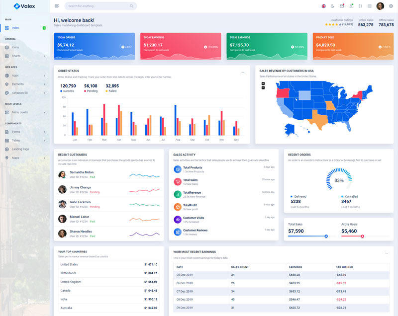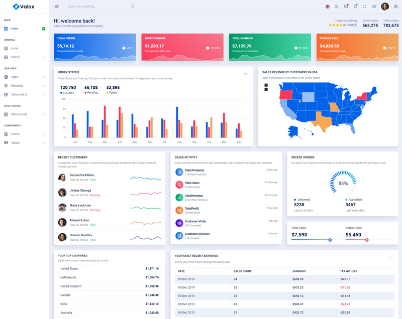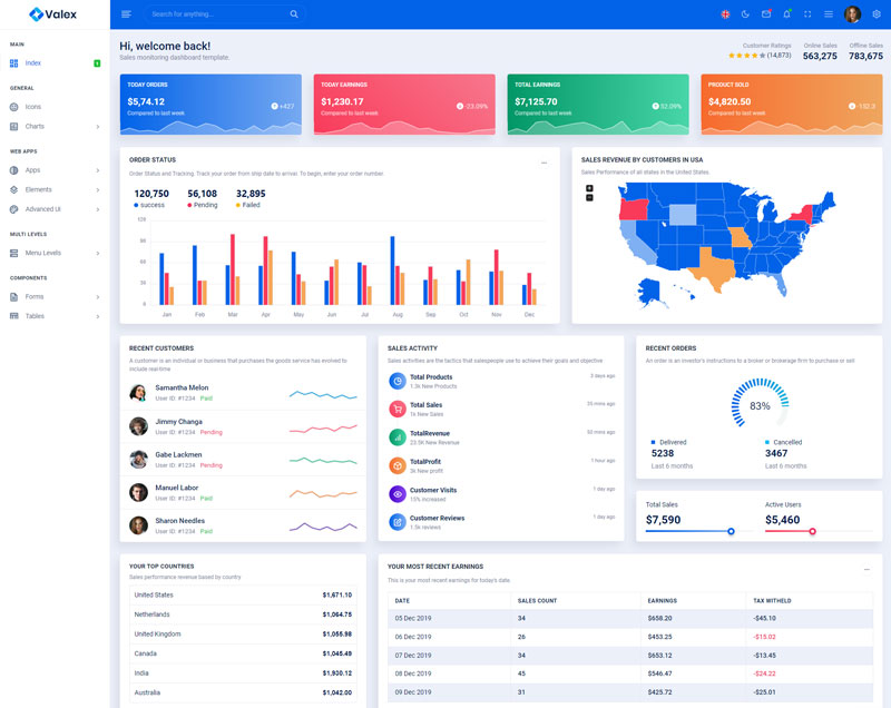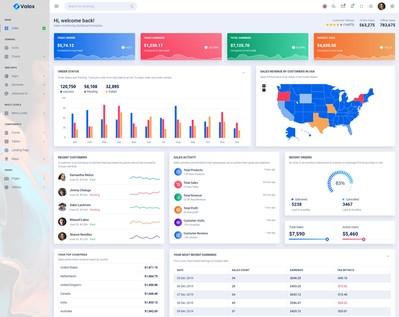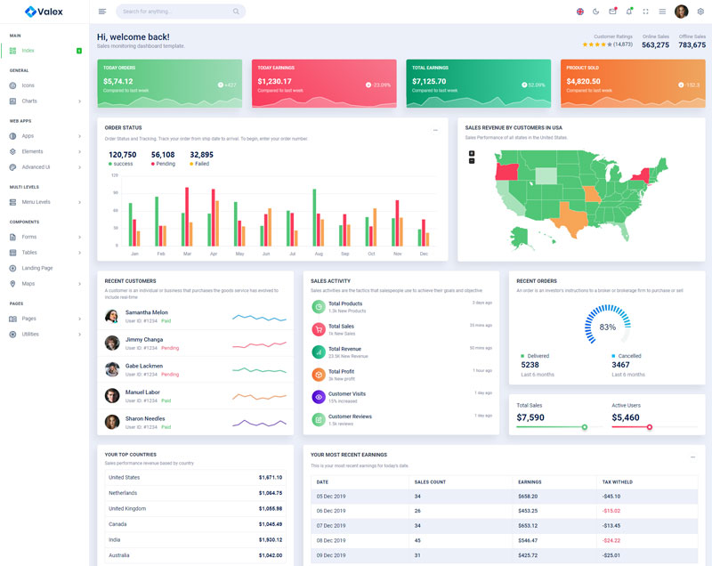 Valex has important features such as the design quality, compatibility with your front-end framework, responsiveness, ease of customization, documentation and support, and additional features such as plugins also integrated.