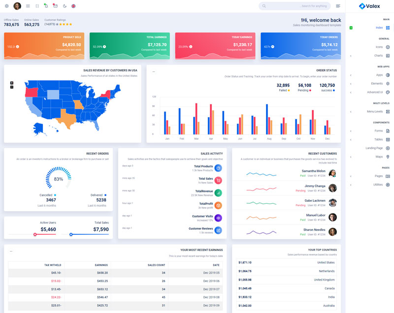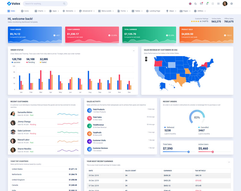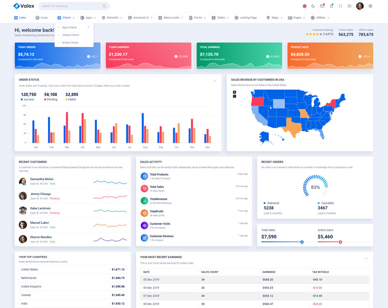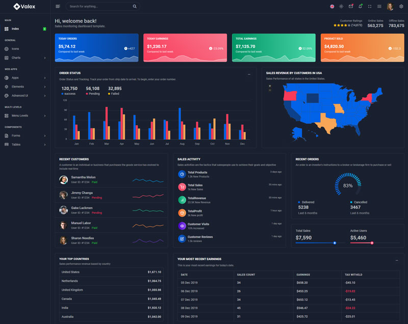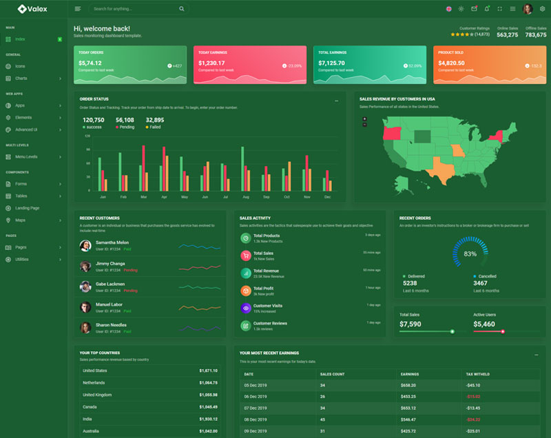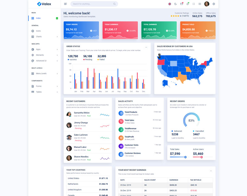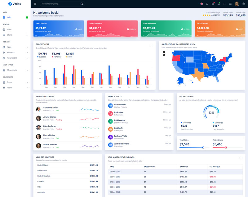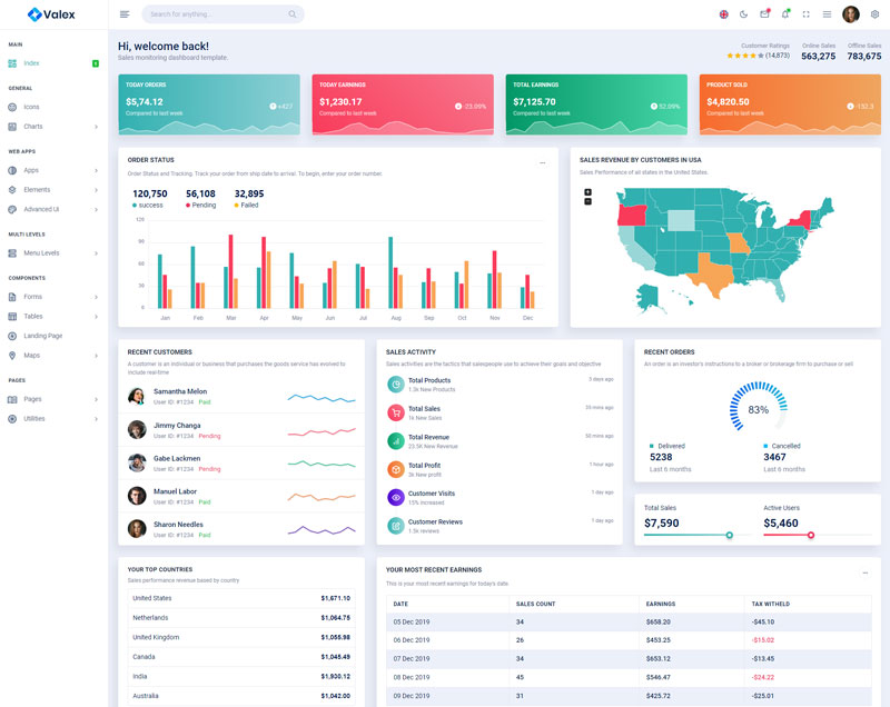 Valex has important features such as the design quality, compatibility with your front-end framework, responsiveness, ease of customization, documentation and support, and additional features such as plugins also integrated.