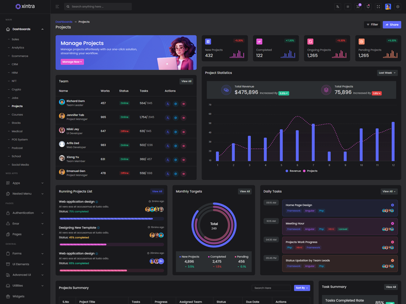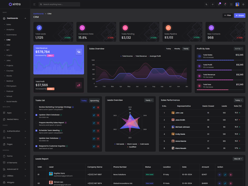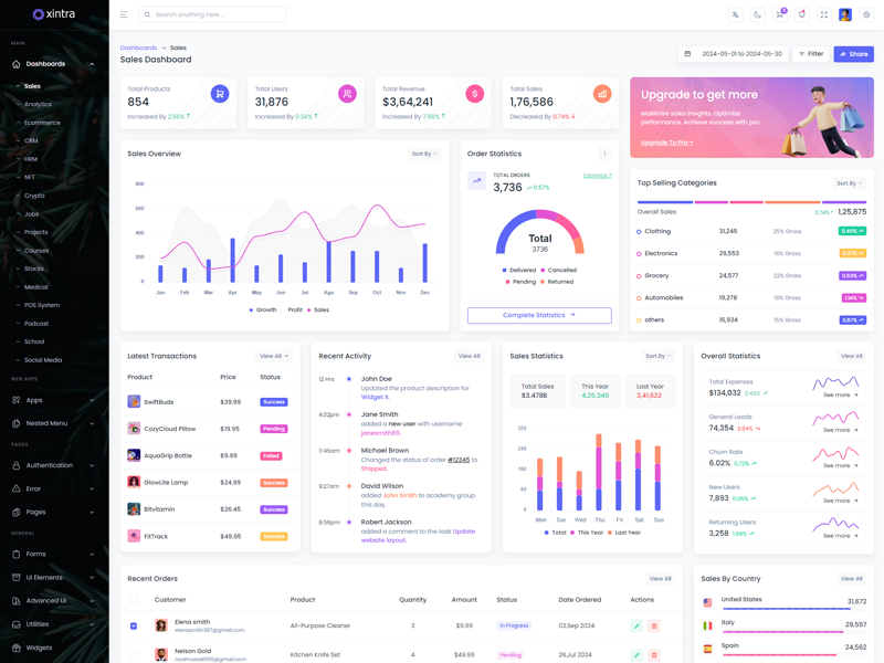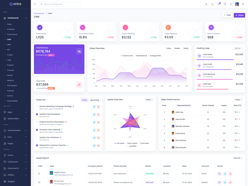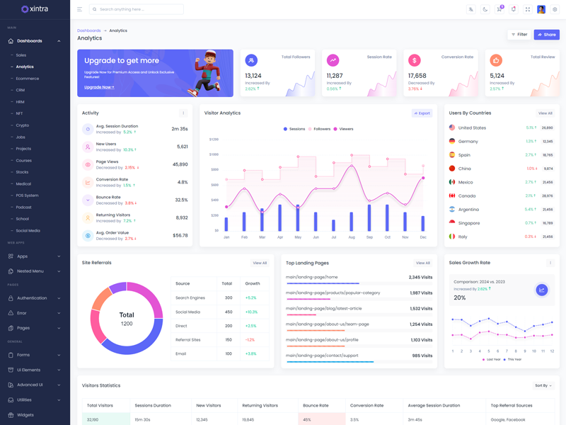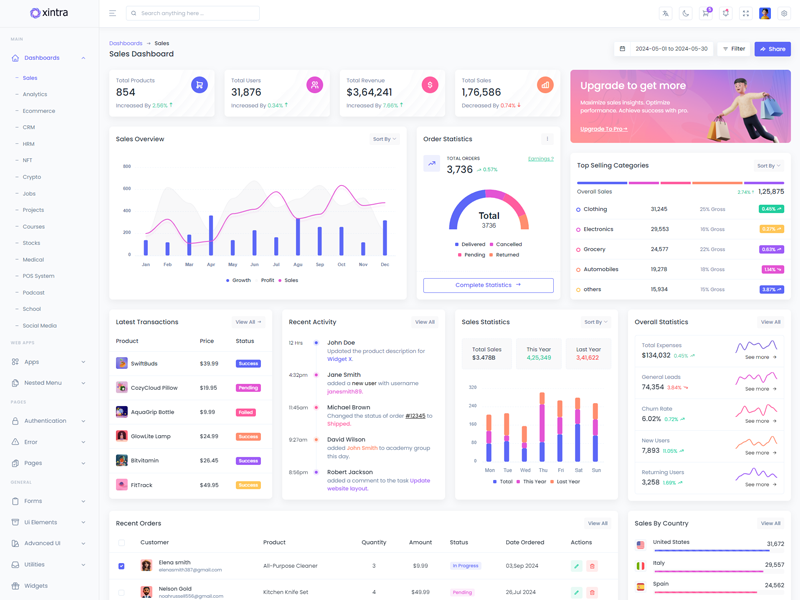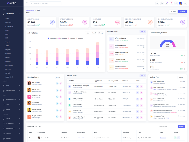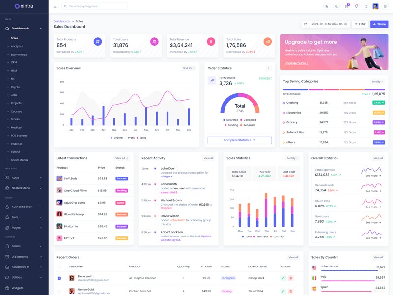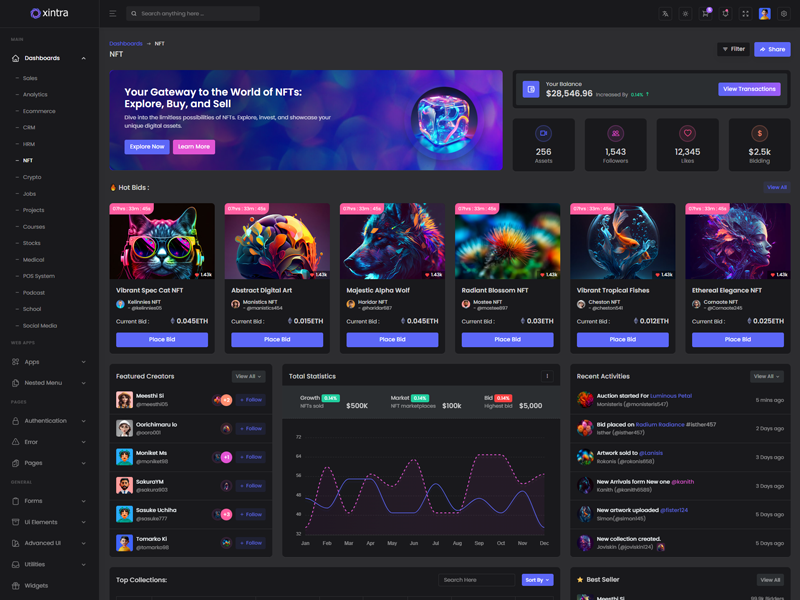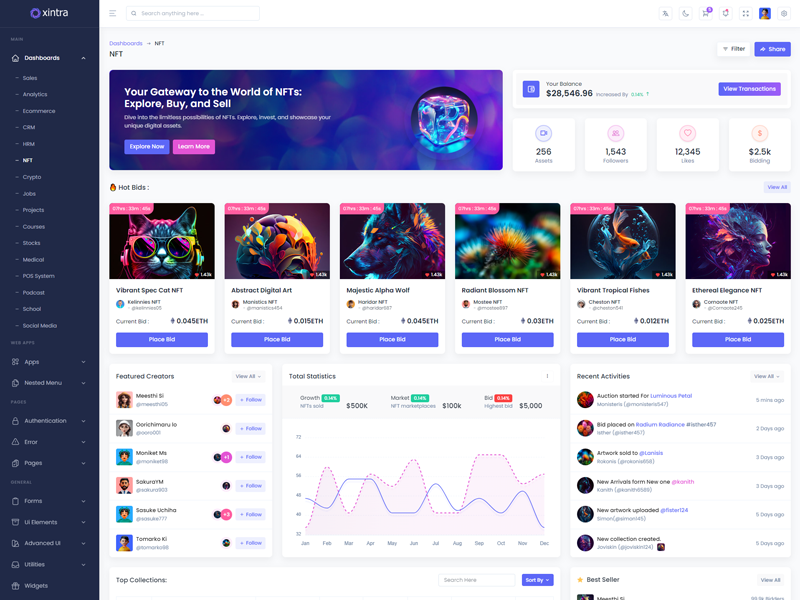 Explore the latest trending features incorporated into the Xintra Admin template, showcasing how we have enhanced and designed our template. When it comes to design, we always keep a close watch on the most trending features.