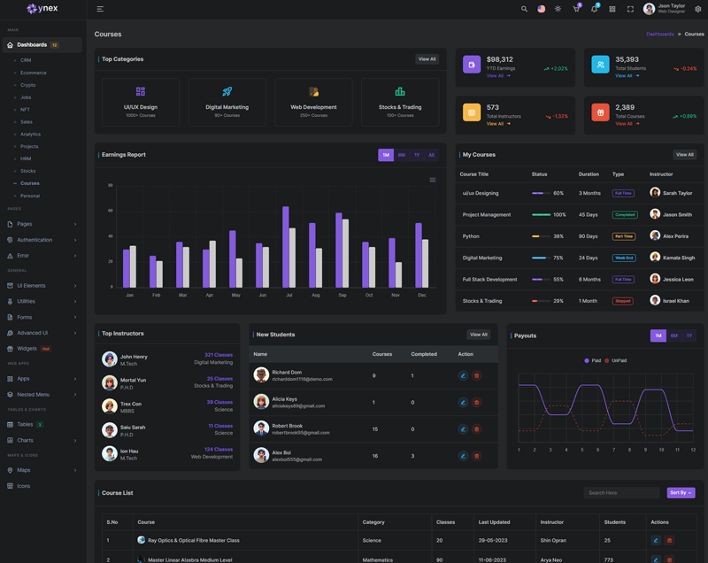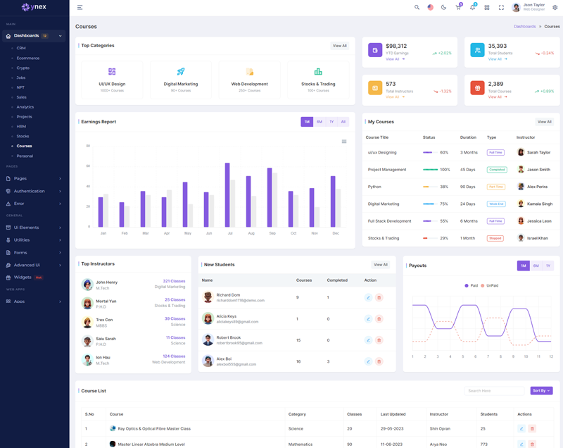 Here are some of the pages in Ynex admin template ui design, no need of additional customization required, designed perfectly for ready to use template.
