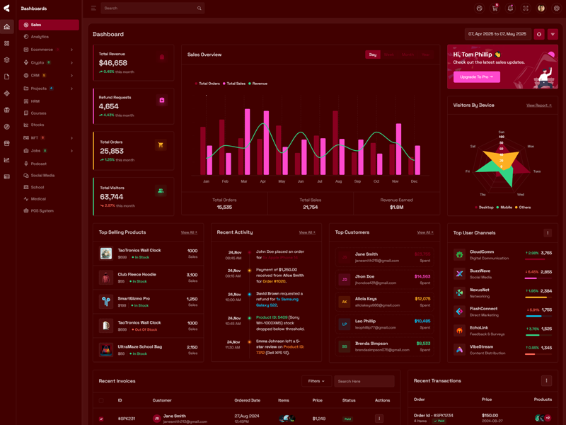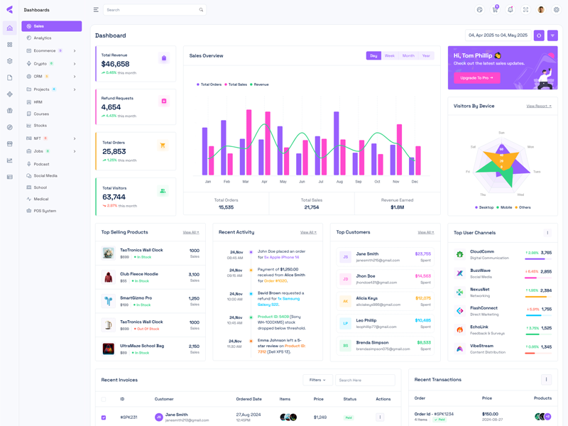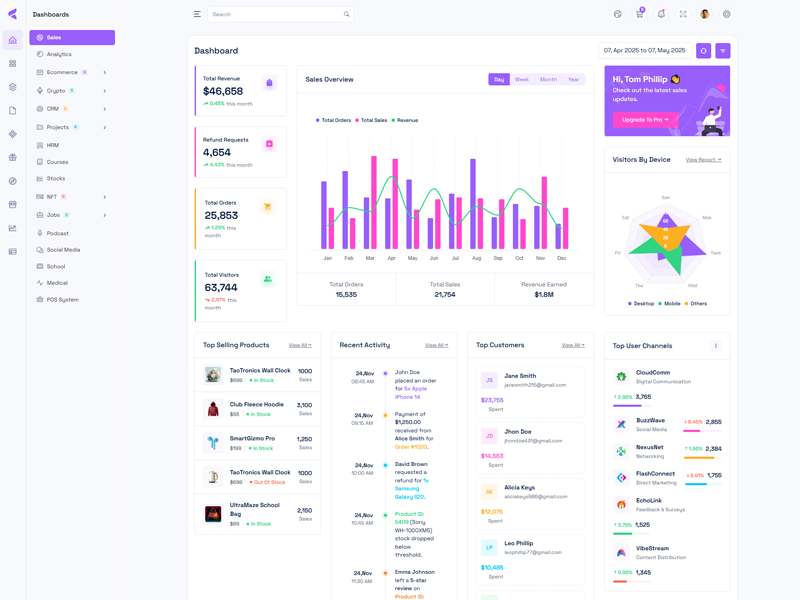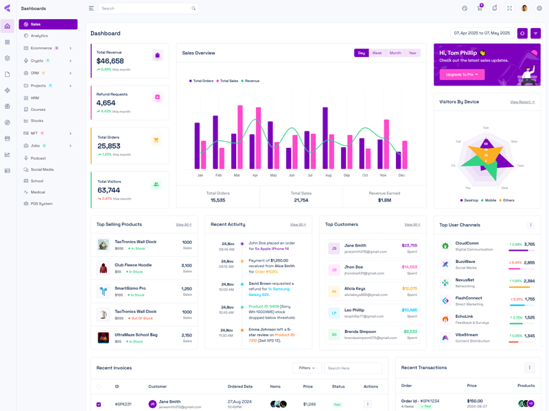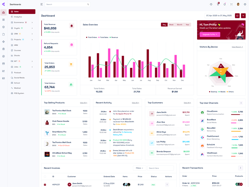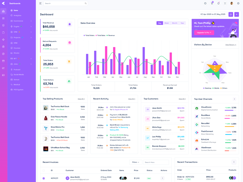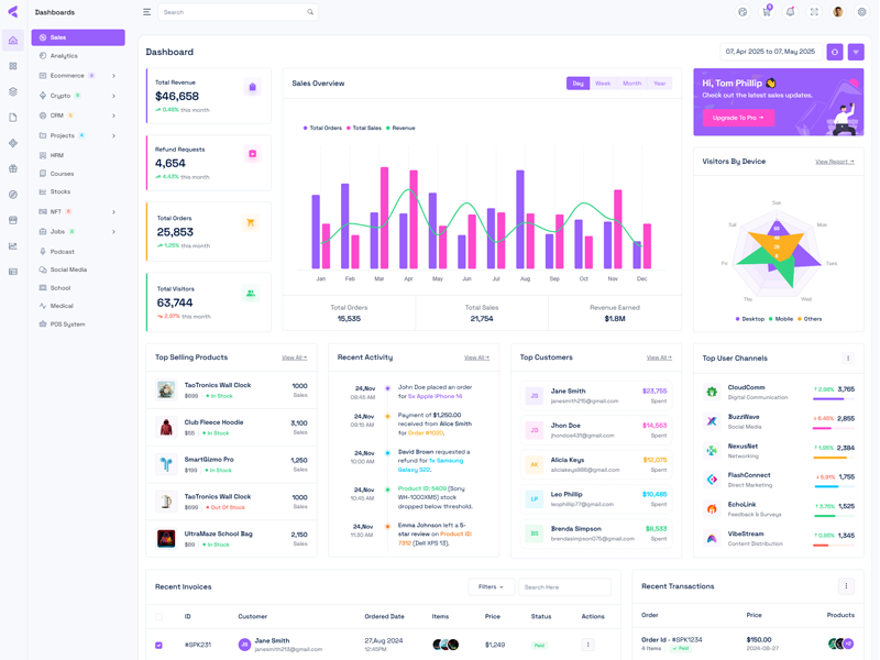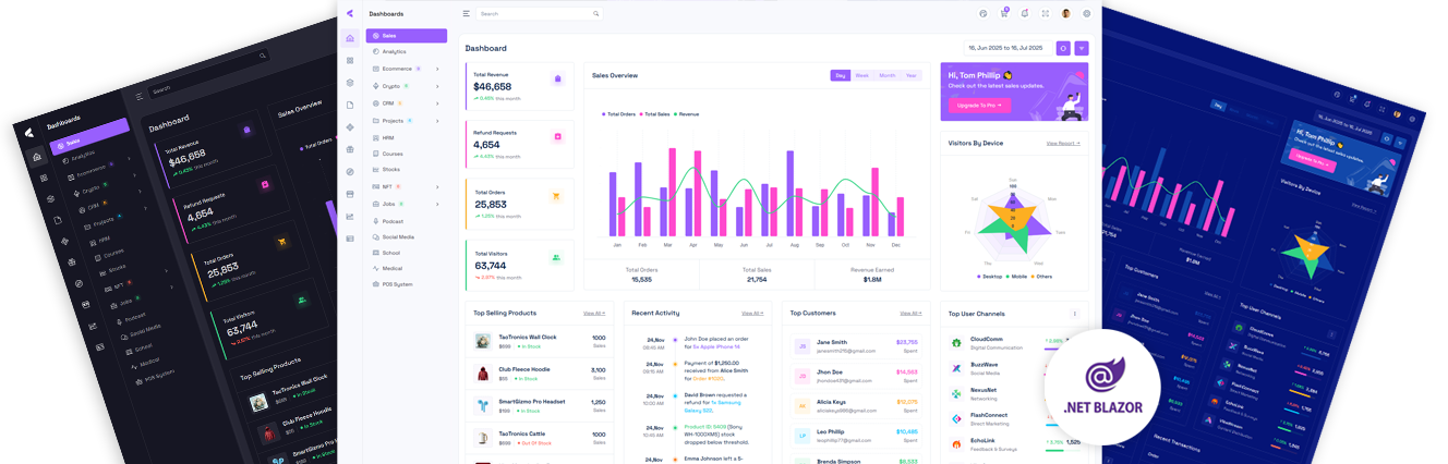 Discover the multiple Features packed into the Vyzor Blazor Web App Server Premium Admin & Dashboard Template, each offering flexible customization to suit any project style or requirement. Built for developers of all levels, Vyzor makes it easy to create stunning, high-performance dashboards with minimal effort.