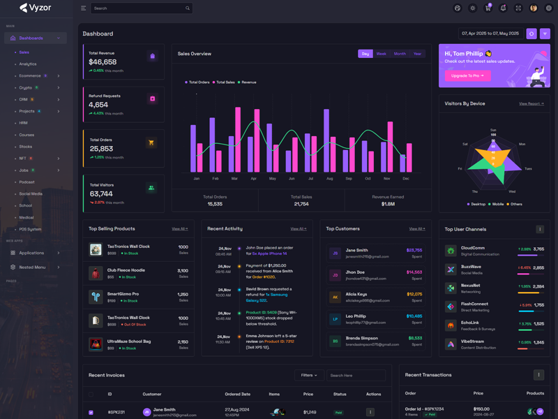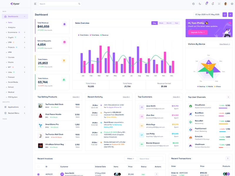 Here’s a quick overview of the Vyzor Blazor Web App Server Bootstrap Dashboard Template and its key features.