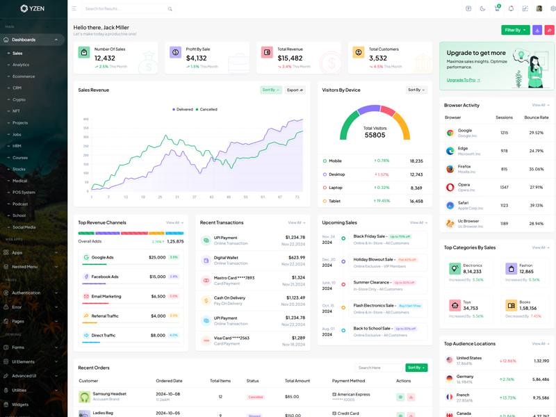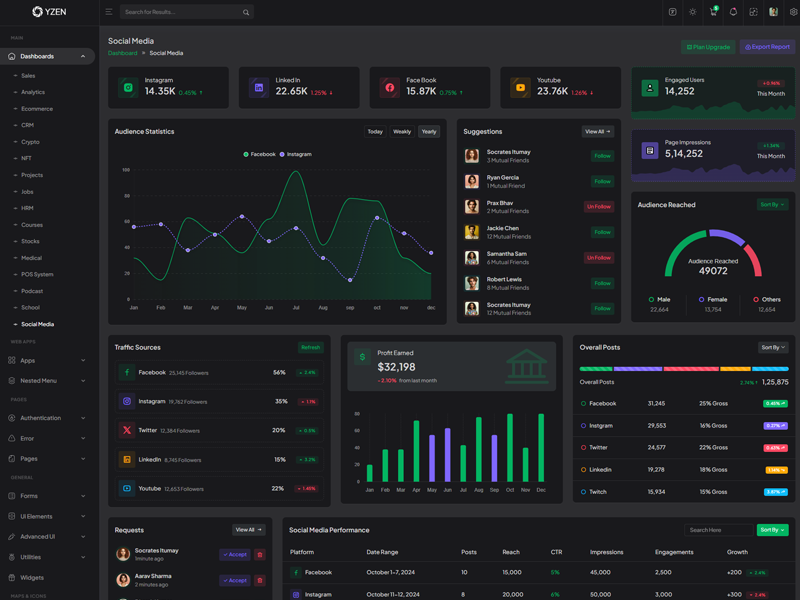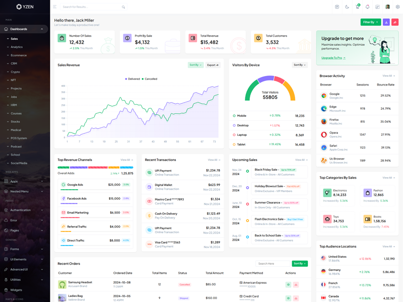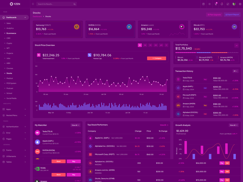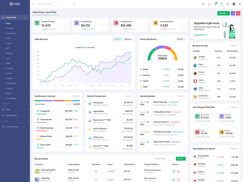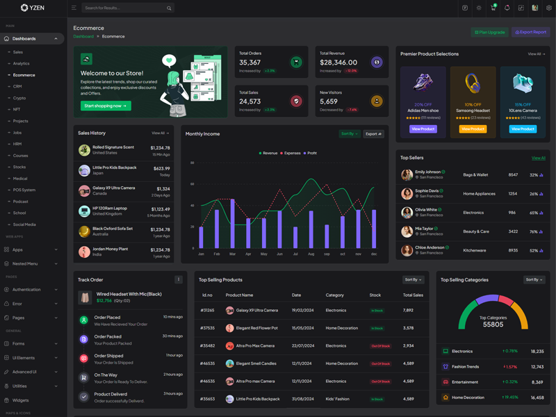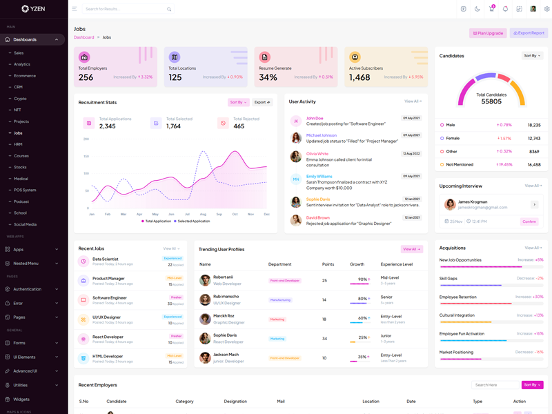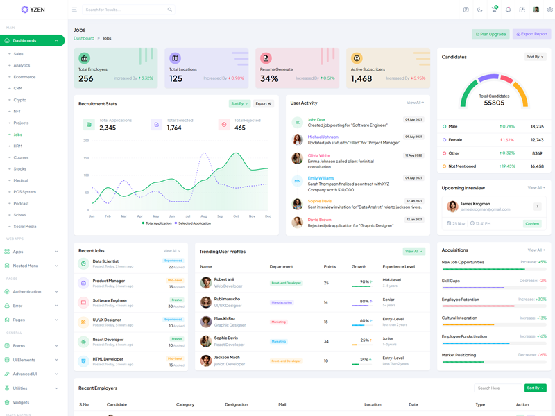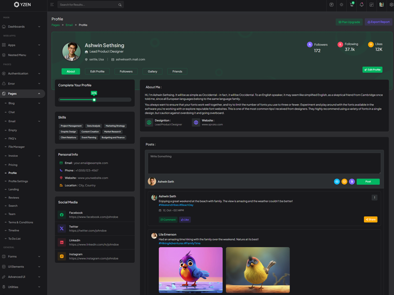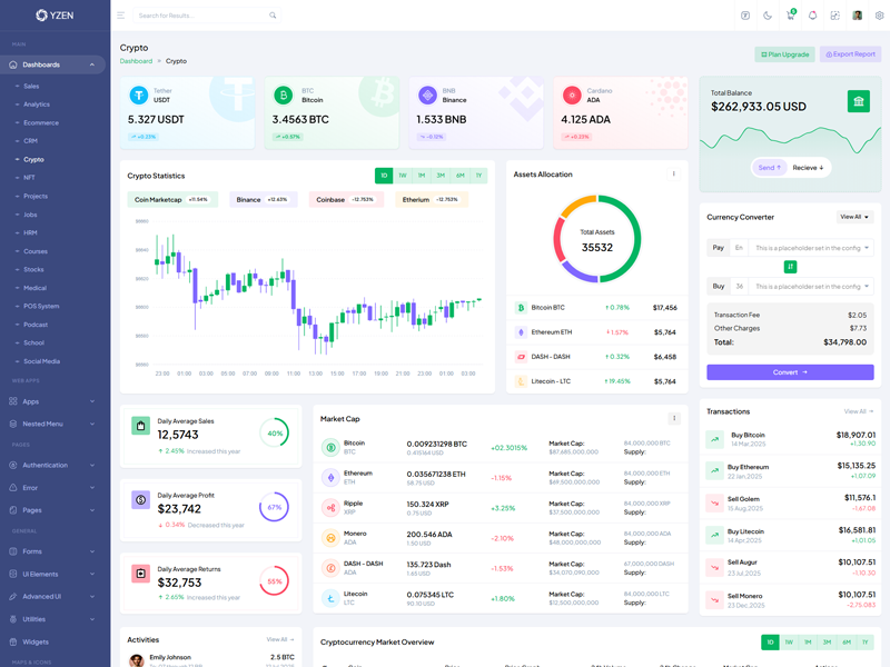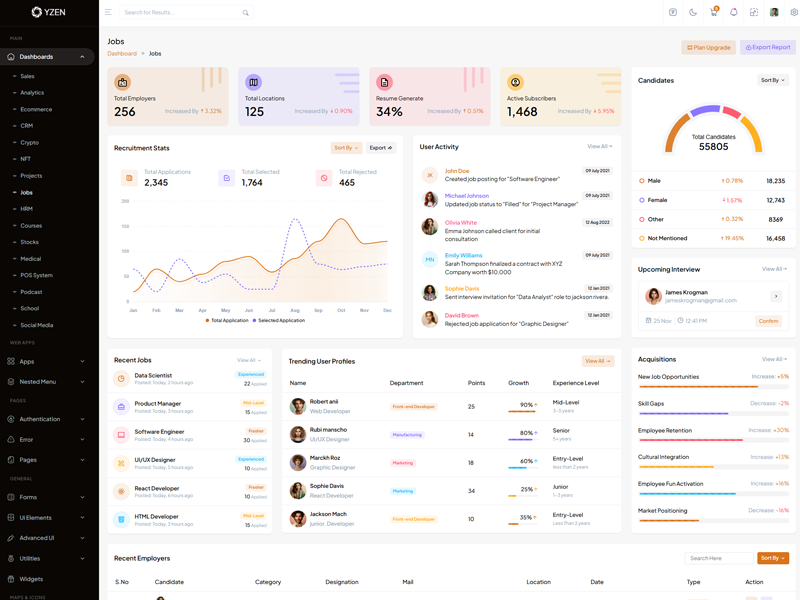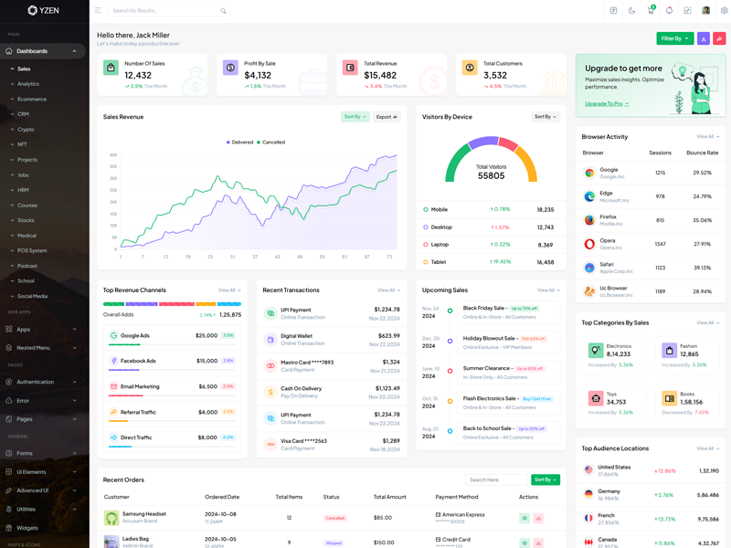 Yzen - Premium Admin & Dashboard Template boasts essential features such as design quality, compatibility with your front-end framework, responsiveness, ease of customization, comprehensive documentation, and dedicated support. Additionally, it includes integrated plugins and other supplementary features.
