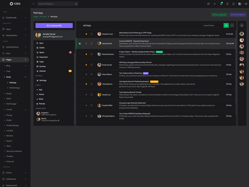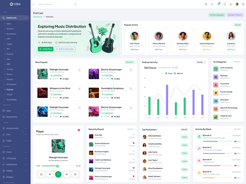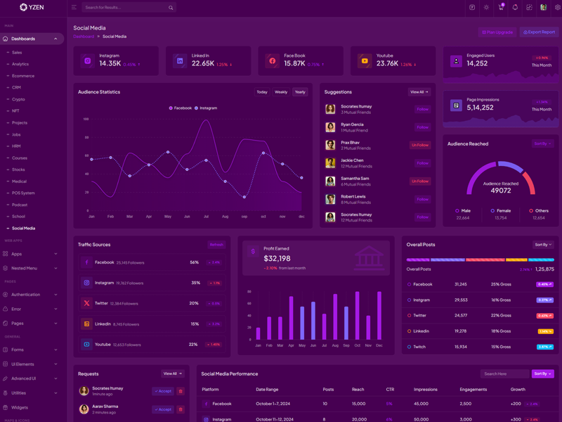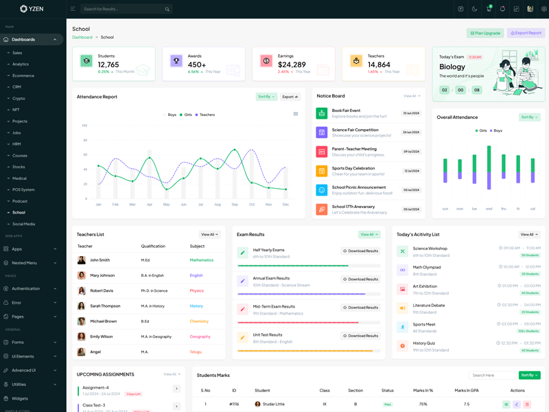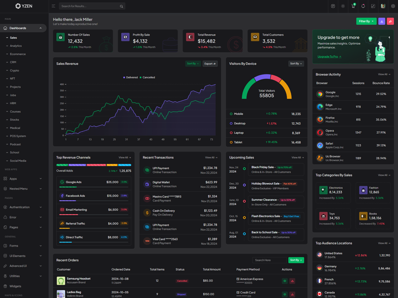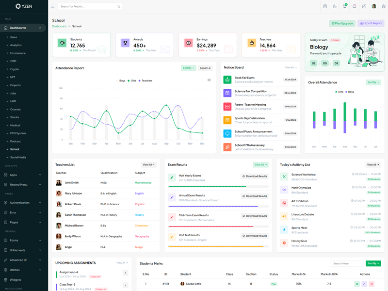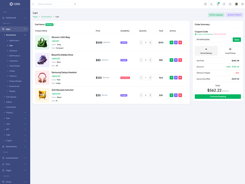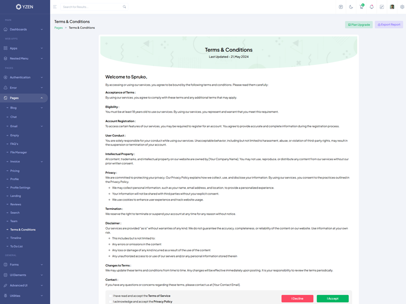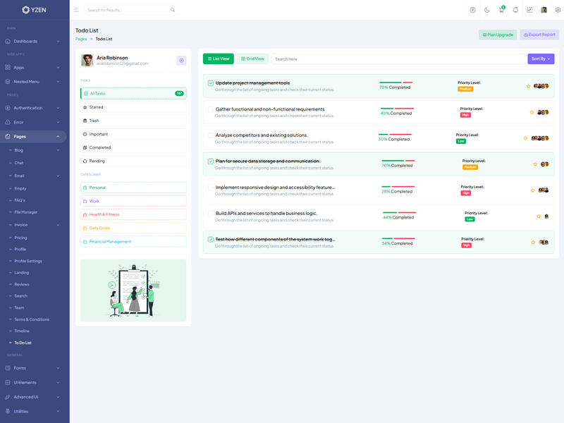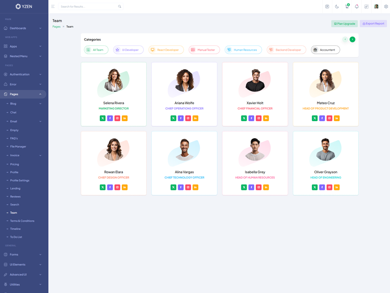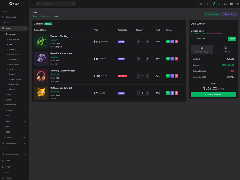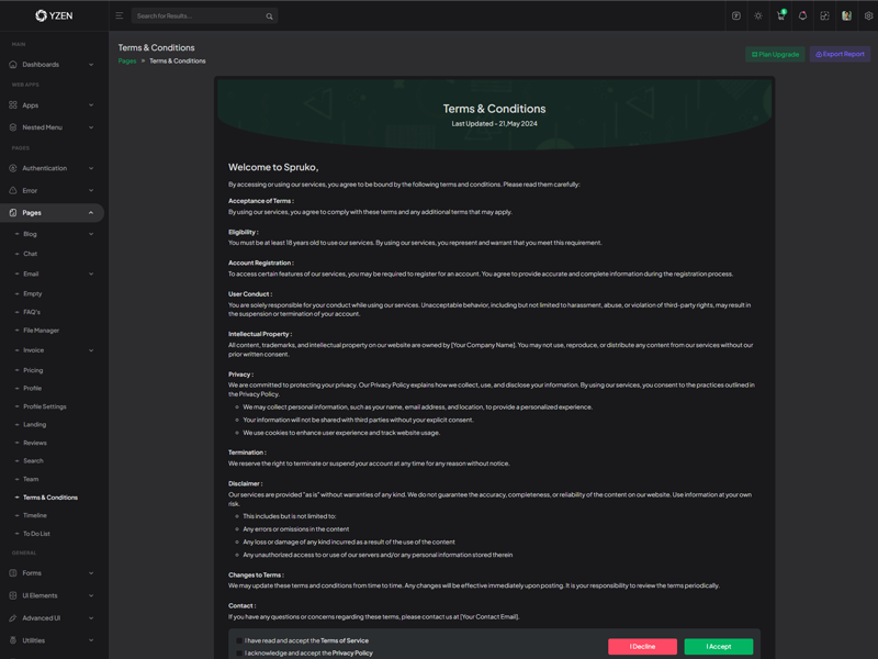 Yzen - Premium Admin & Dashboard Template boasts essential features such as design quality, compatibility with your front-end framework, responsiveness, ease of customization, comprehensive documentation, and dedicated support. Additionally, it includes integrated plugins and other supplementary features.