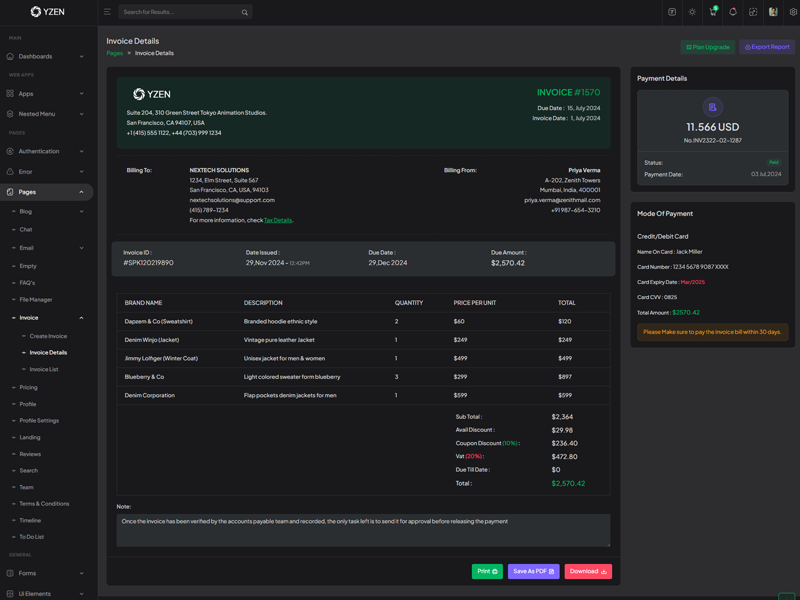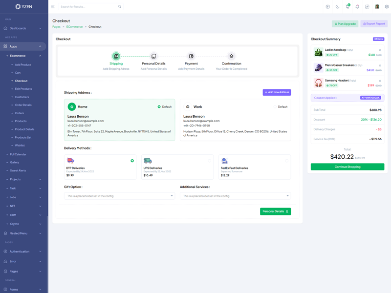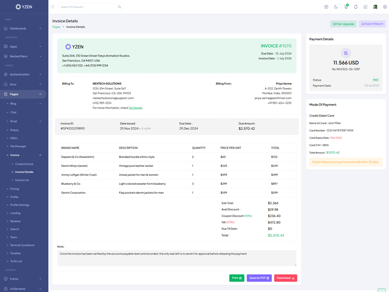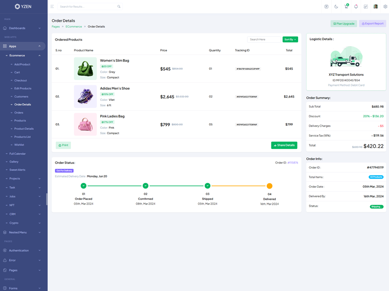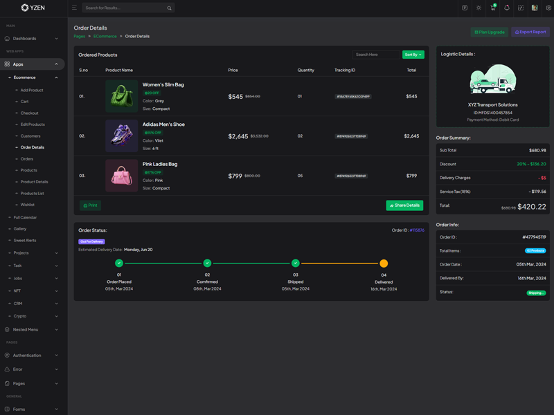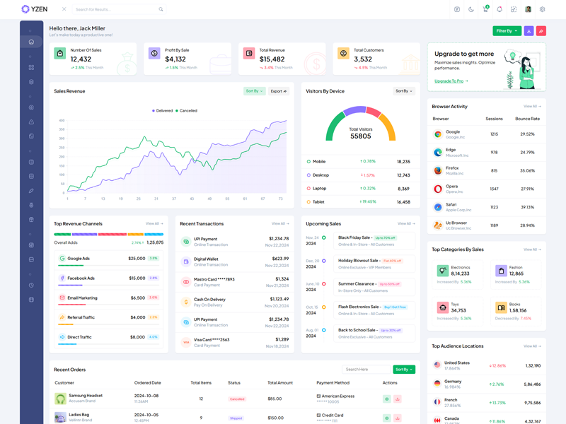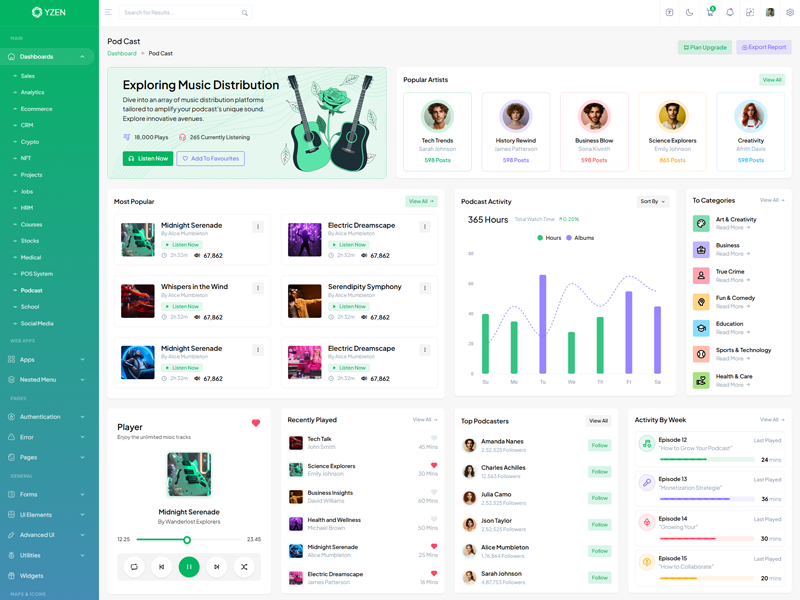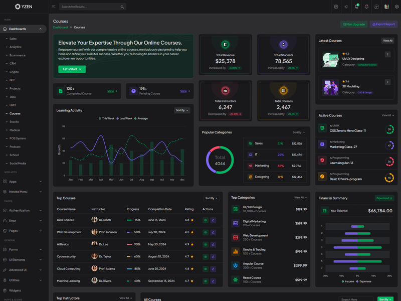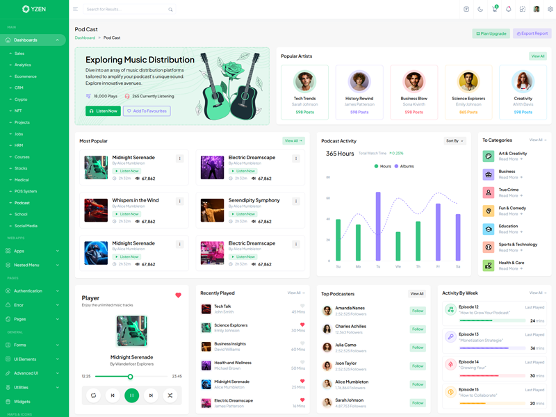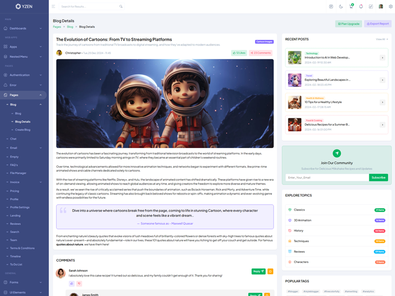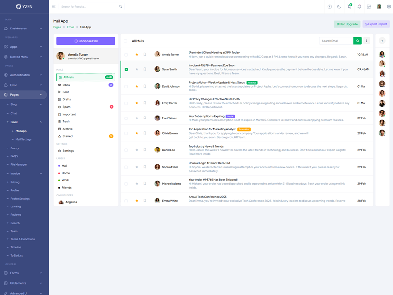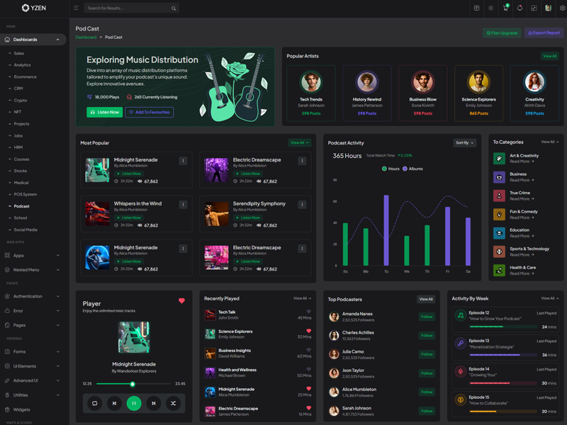 Yzen - Premium Admin & Dashboard Template boasts essential features such as design quality, compatibility with your front-end framework, responsiveness, ease of customization, comprehensive documentation, and dedicated support. Additionally, it includes integrated plugins and other supplementary features.