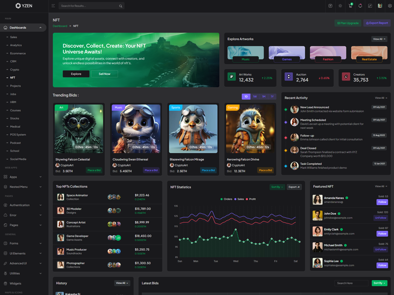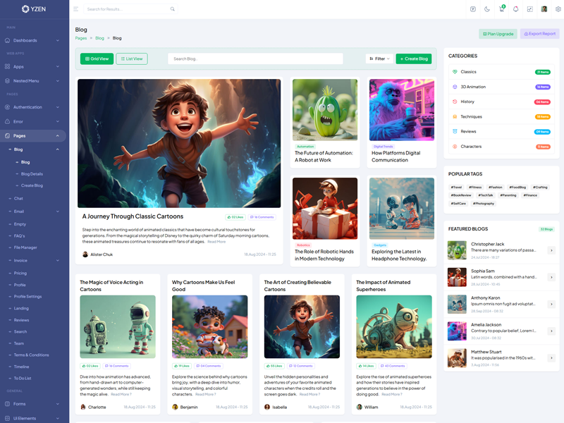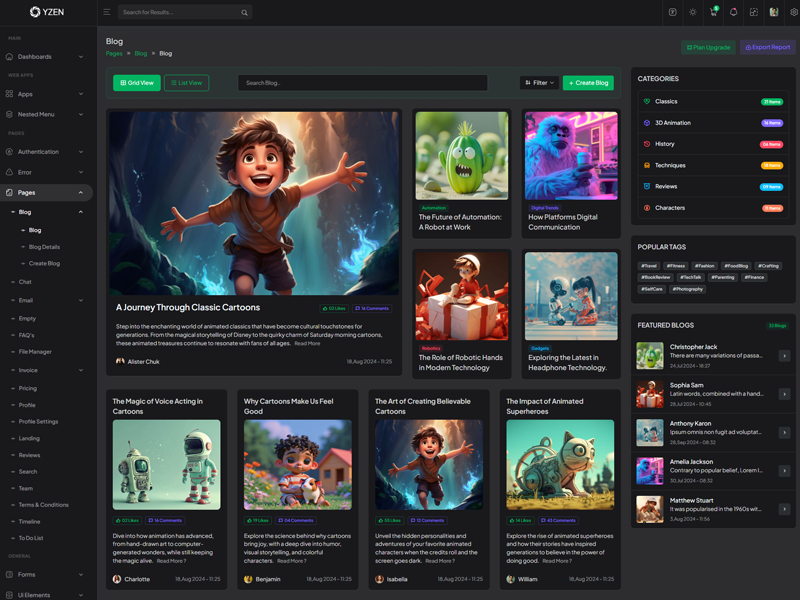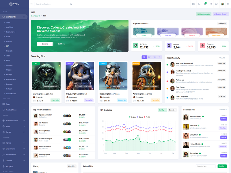 Explore the latest trending features incorporated into the Yzen Blazor Admin template, showcasing how we have enhanced and designed our template. When it comes to design, we always keep a close watch on the most trending features.