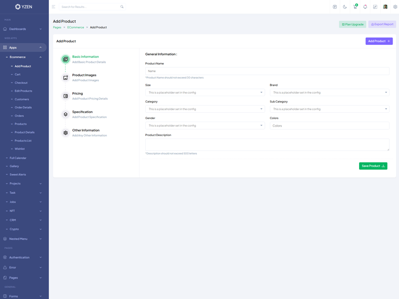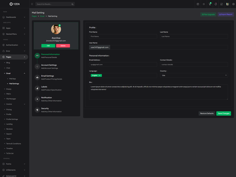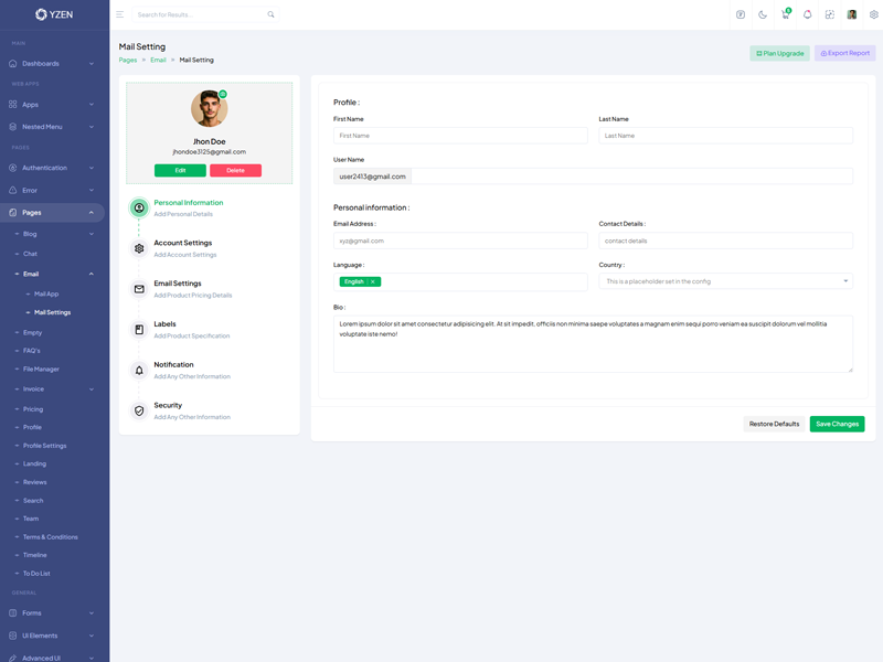 This is the basic information related to Yzen Blazor Dashboard Template”.