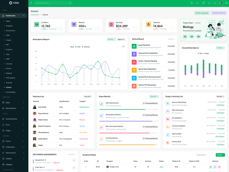 Yzen offers 16 attractive dashboards with various themes for users to customize the Premium Blazor Webapp Sever Admin Template based on their preference.