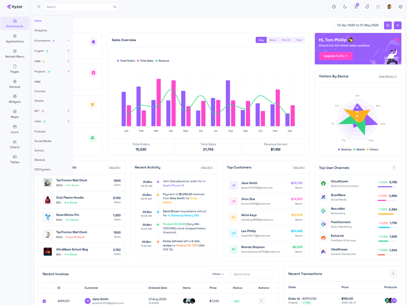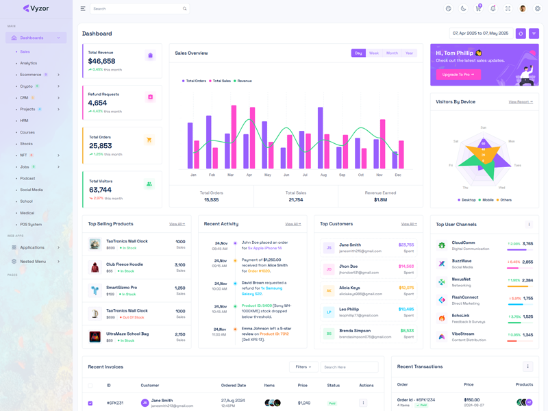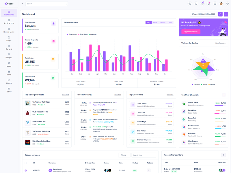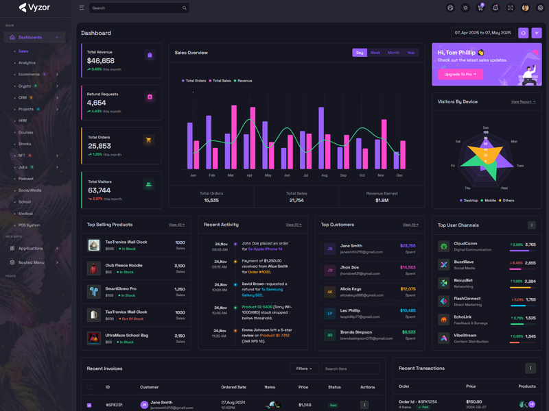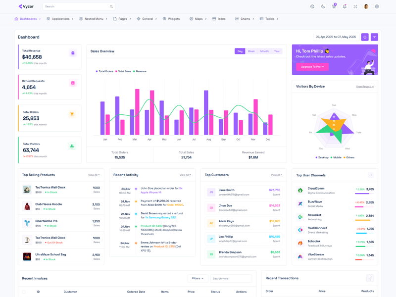 Discover the multiple Features packed into the Vyzor CakePHP Premium Admin & Dashboard Template, each offering flexible customization to suit any project style or requirement. Built for developers of all levels, Vyzor makes it easy to create stunning, high-performance dashboards with minimal effort.