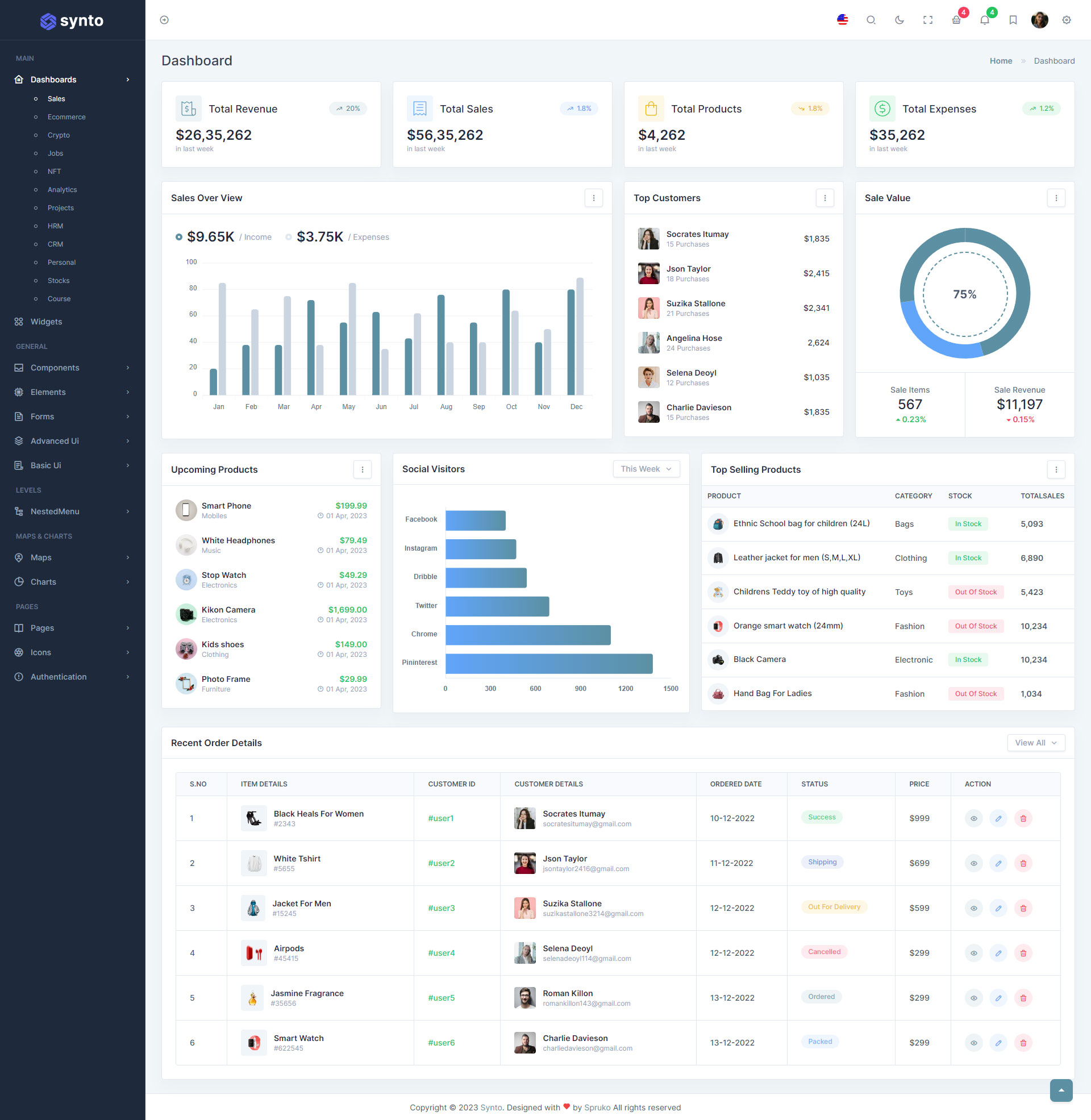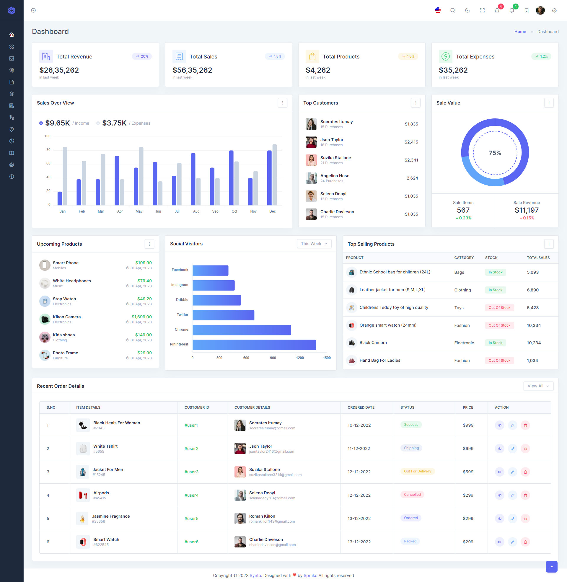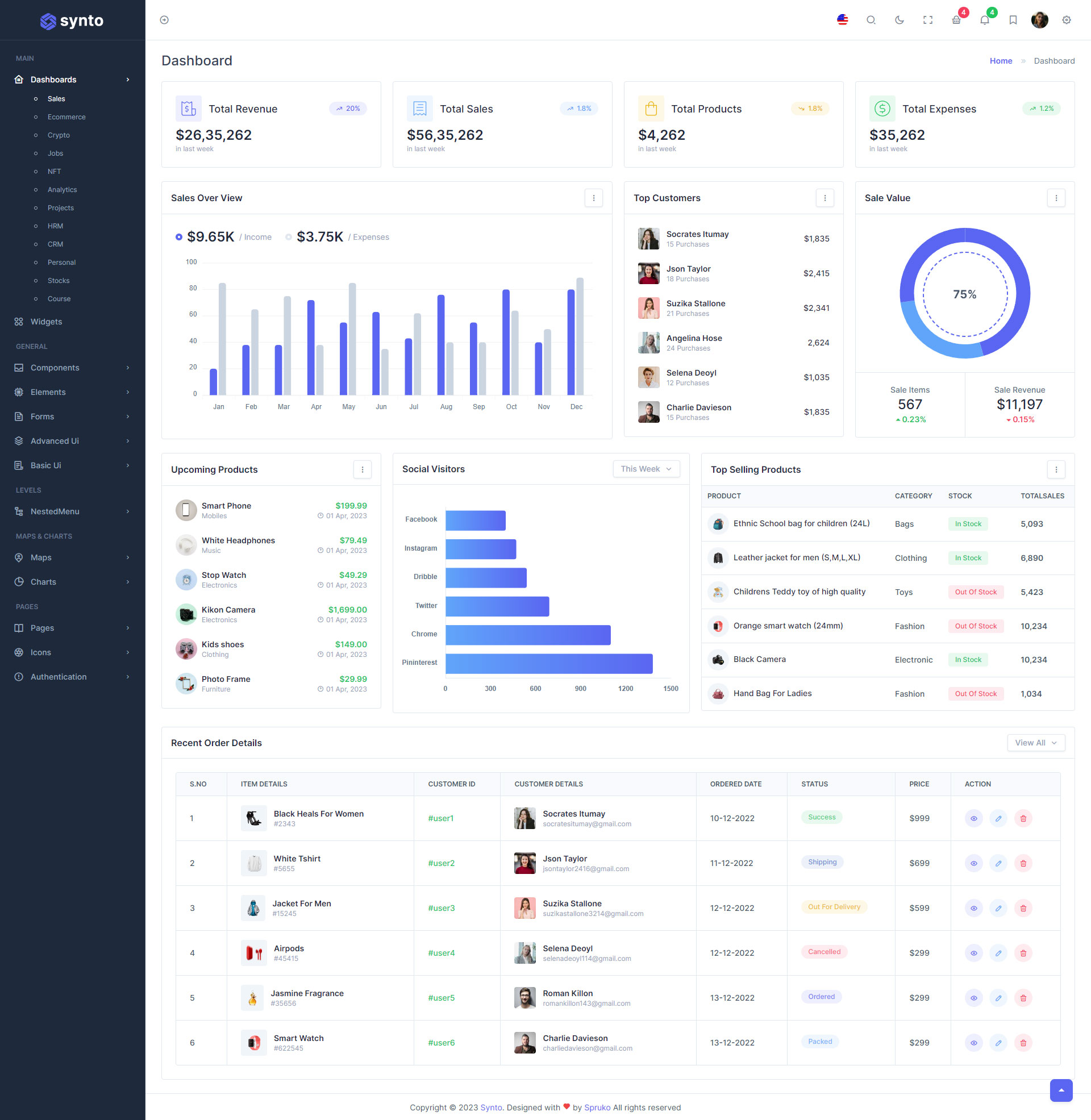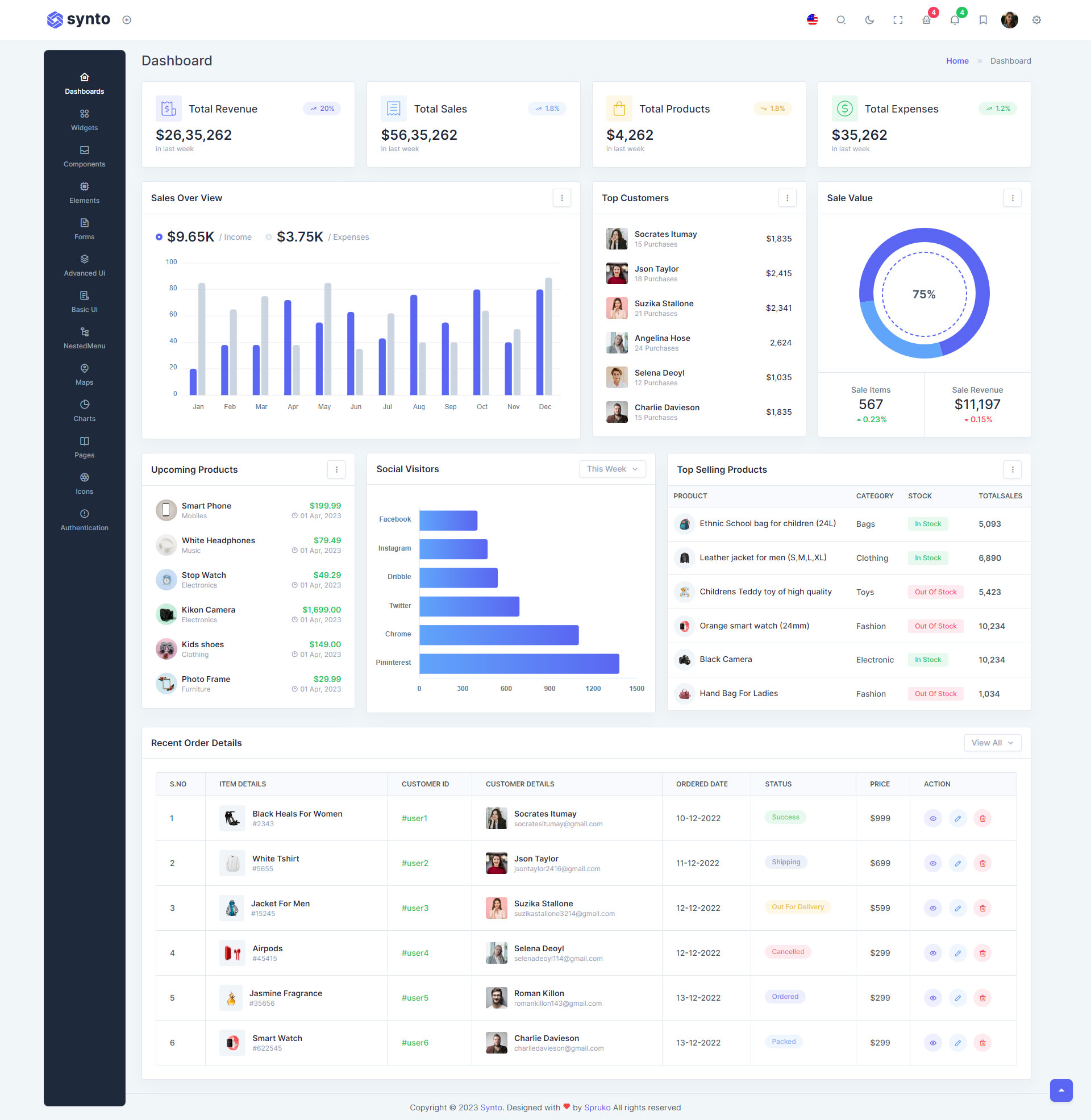 Here, Synto 12 beautiful dashboards and comes with different types of themes. So that users can choose their best theme and customize the Synto - CakePHP Tailwind Admin Template according to their choice.