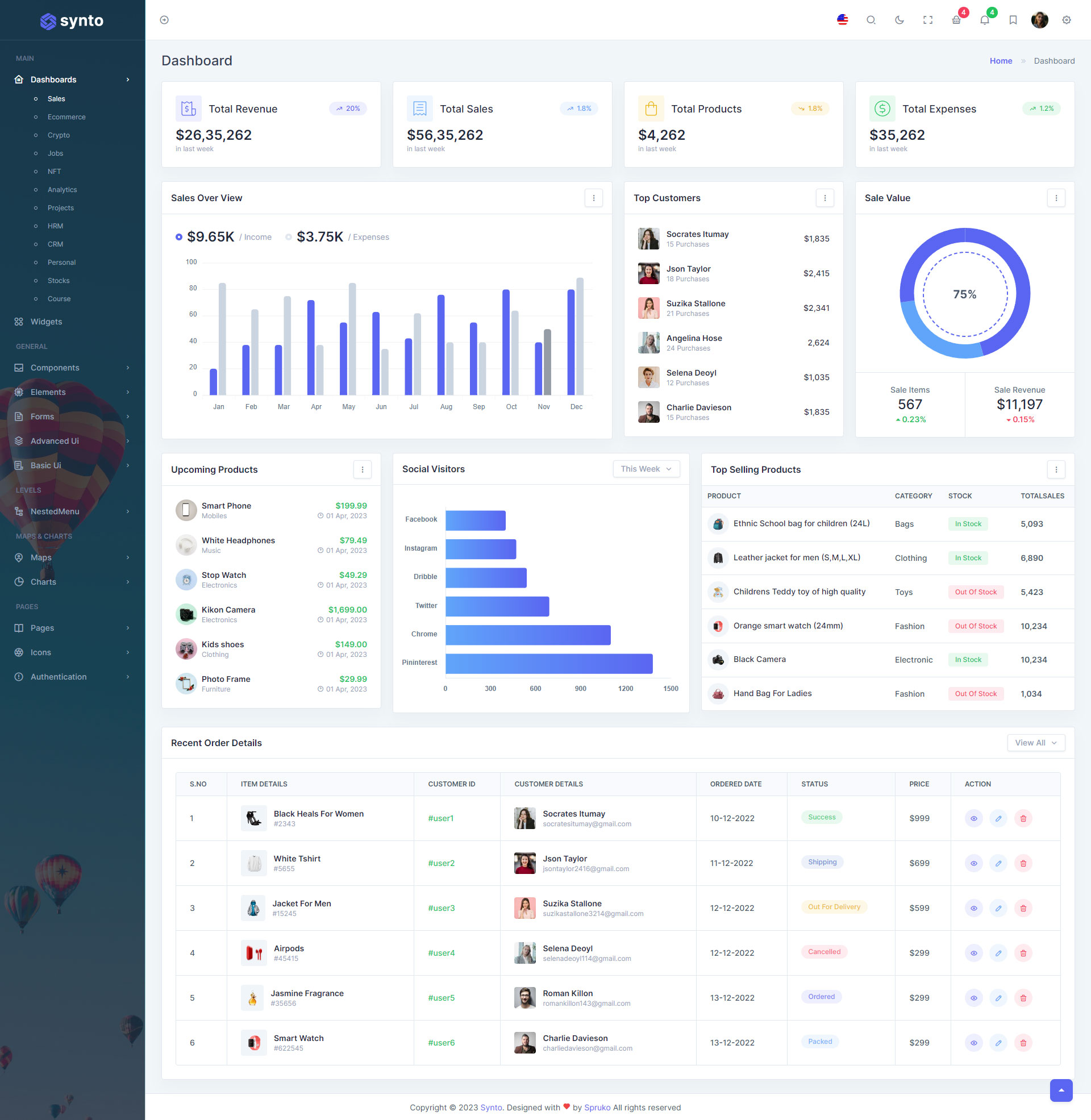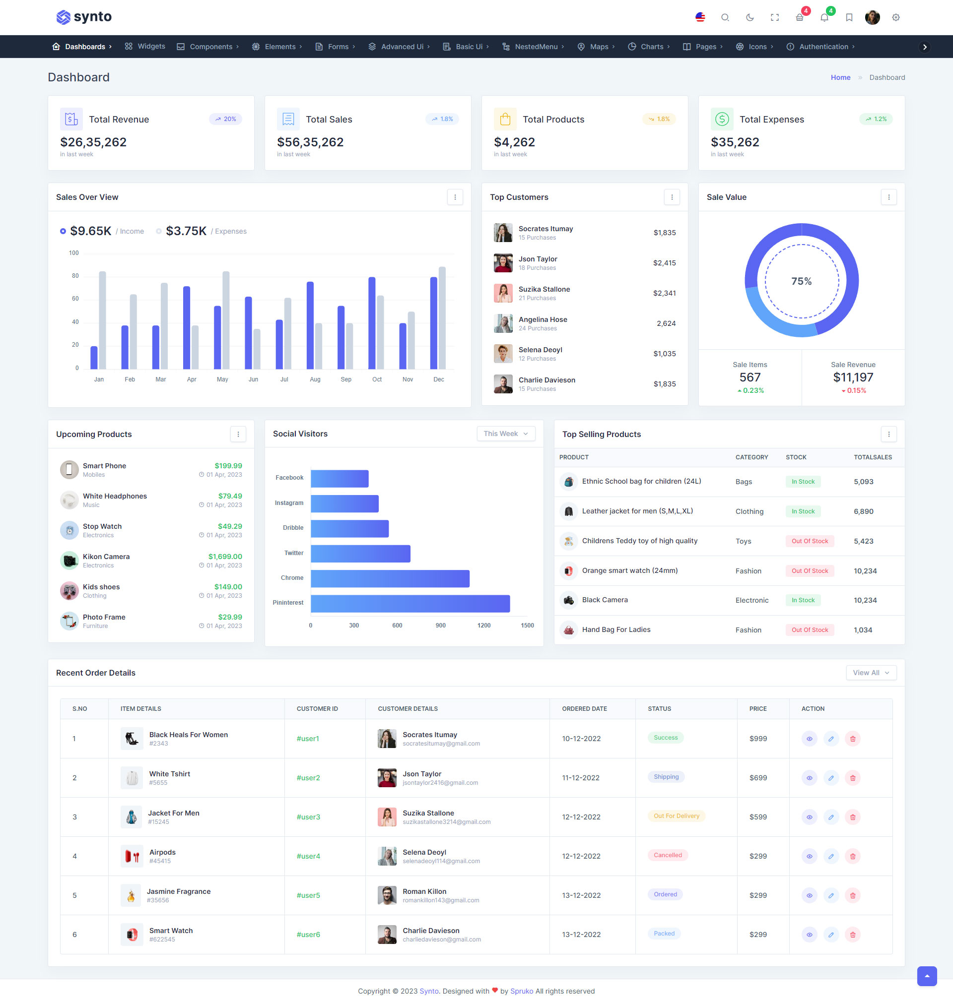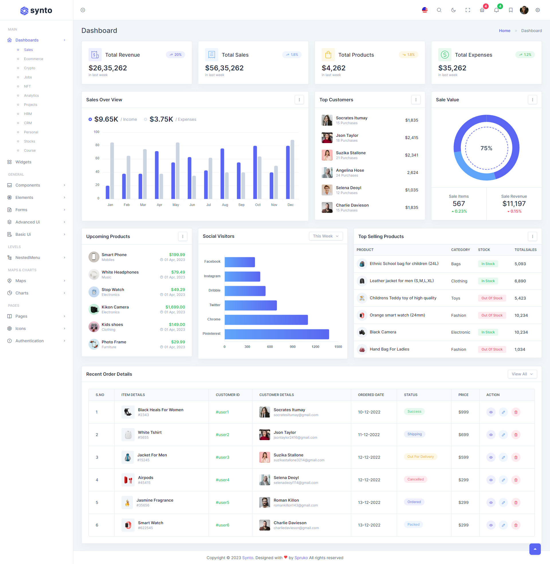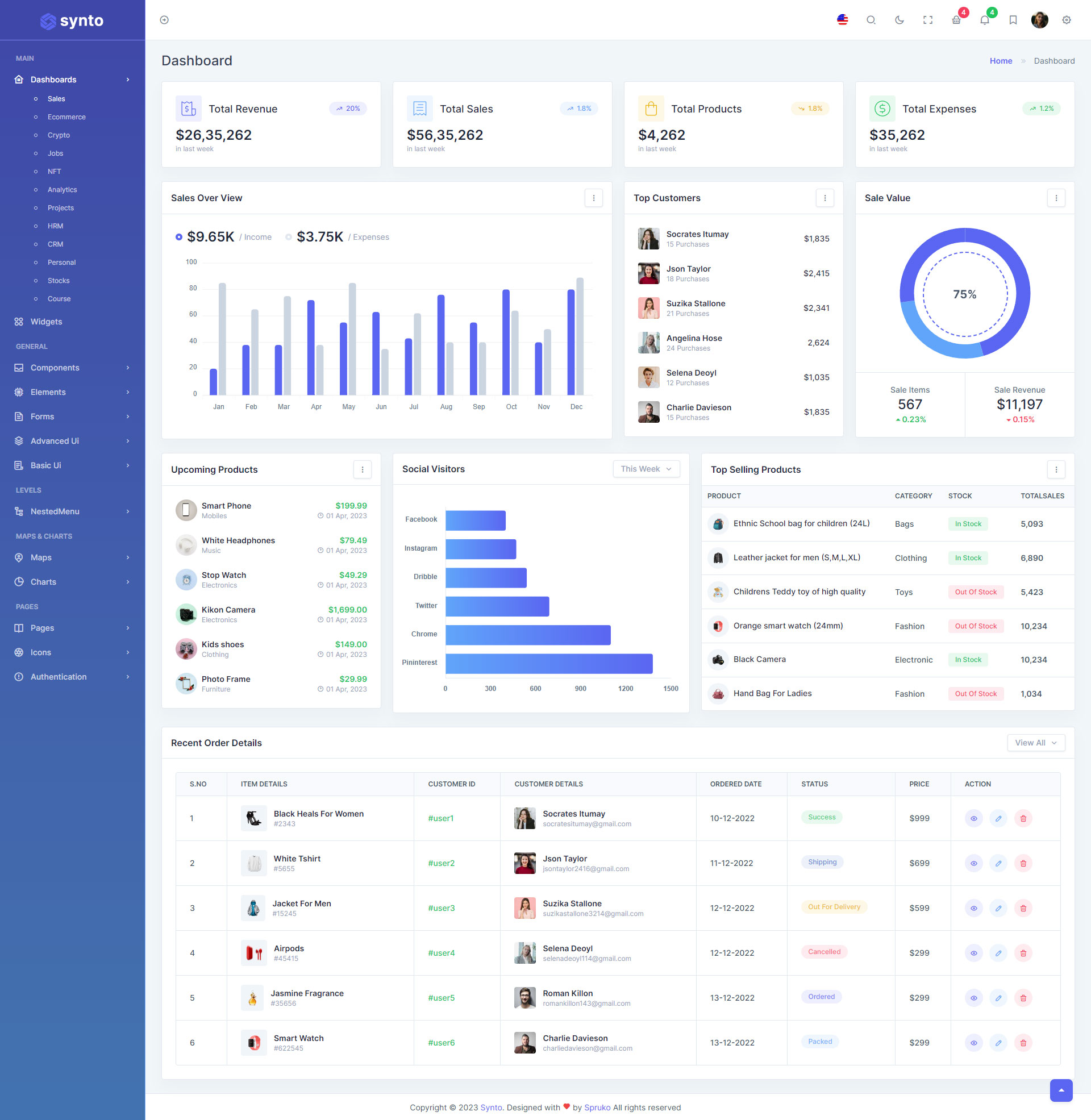 Here, Synto 12 beautiful dashboards and comes with different types of themes. So that users can choose their best theme and customize the Synto - CakePHP Tailwind Admin Template according to their choice.