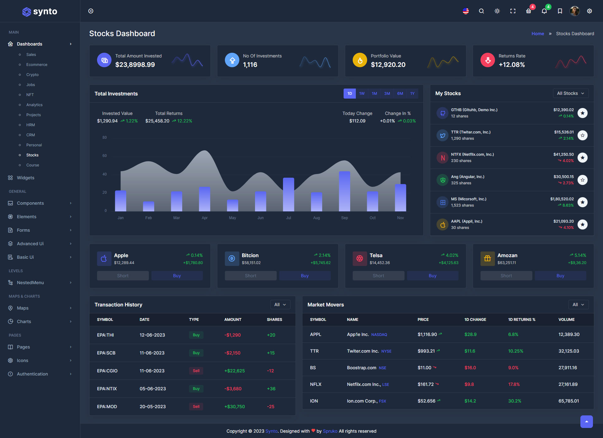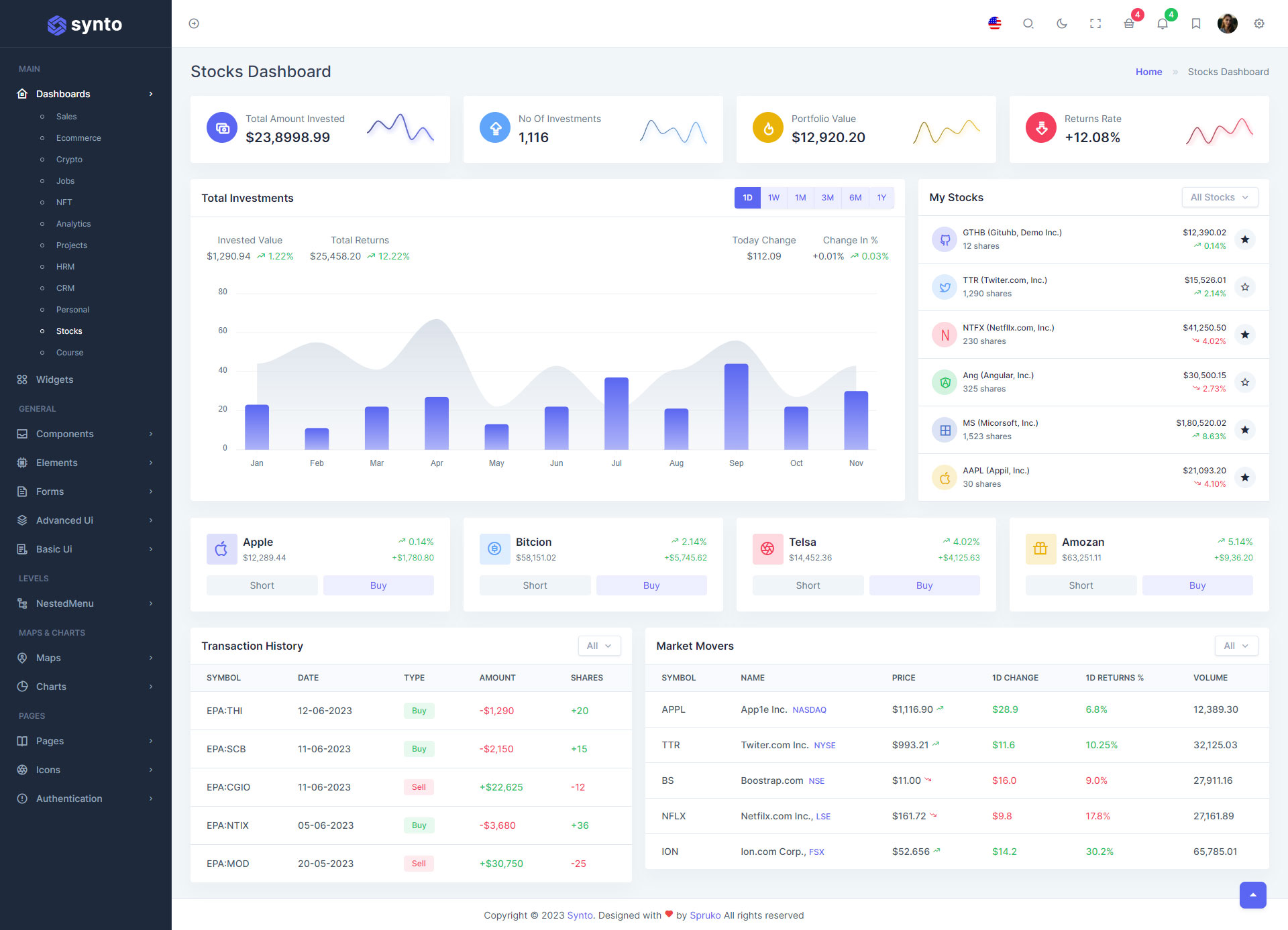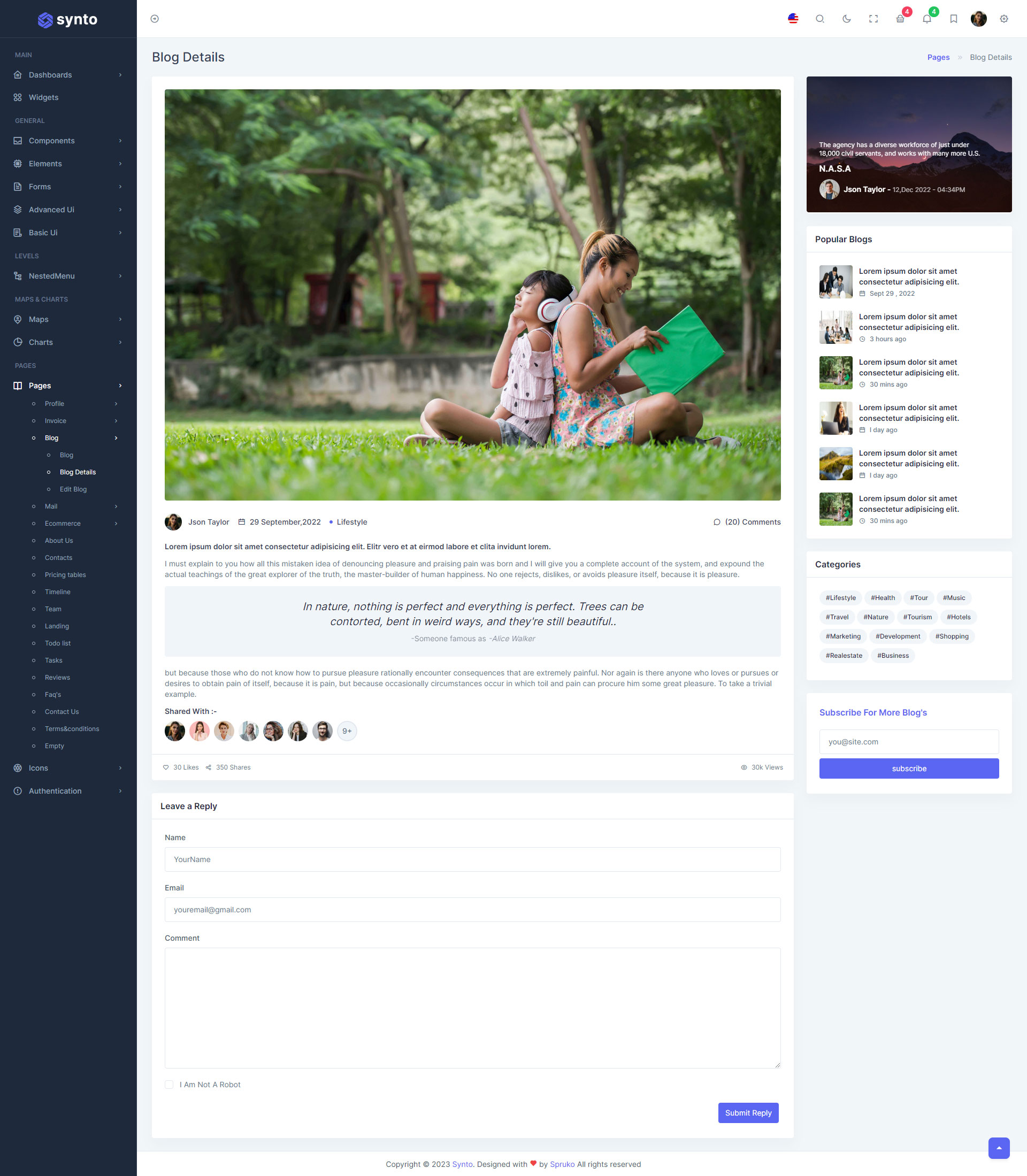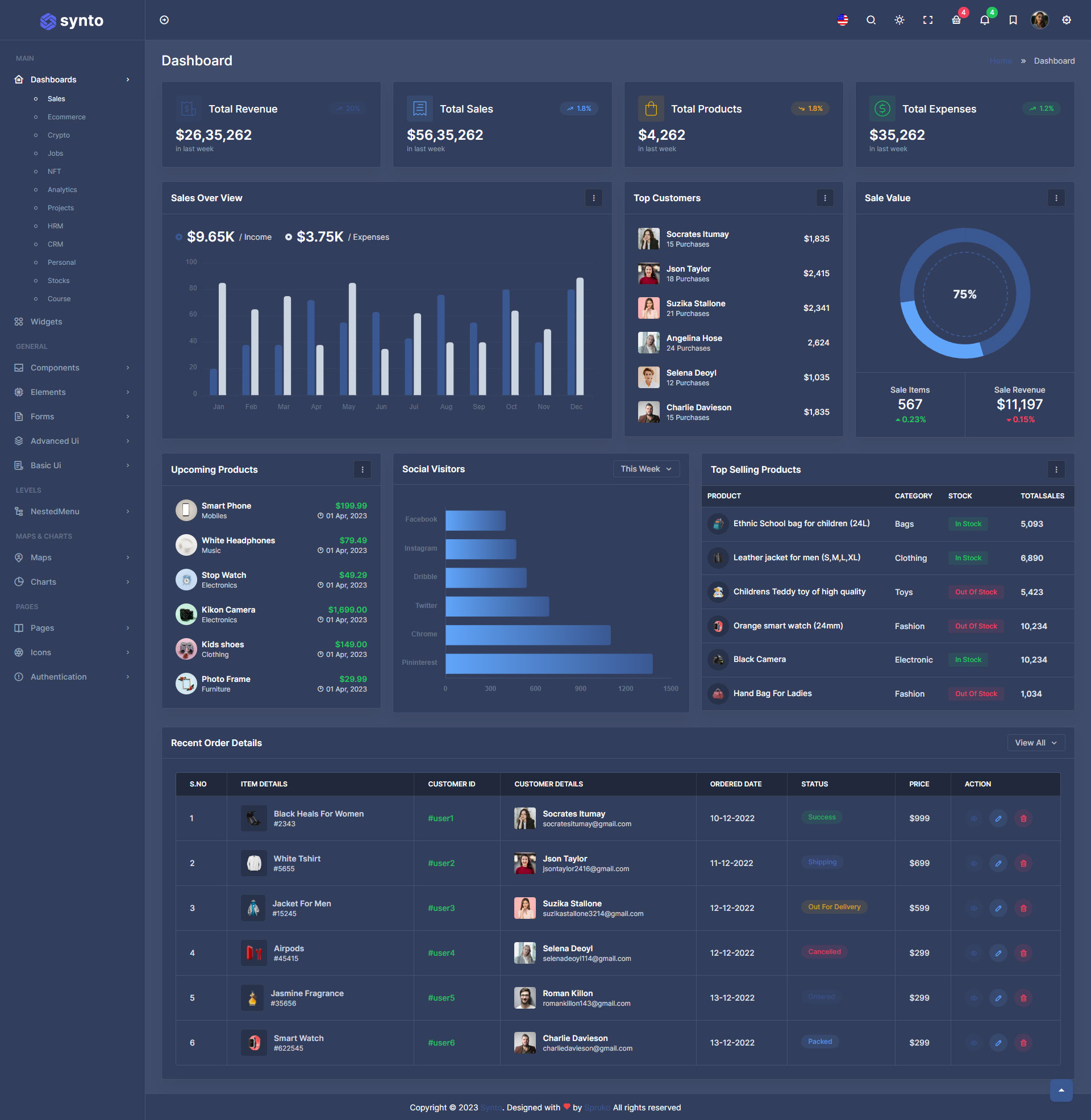 Here, Synto 12 beautiful dashboards and comes with different types of themes. So that users can choose their best theme and customize the Synto - CakePHP Tailwind Admin Template according to their choice.
