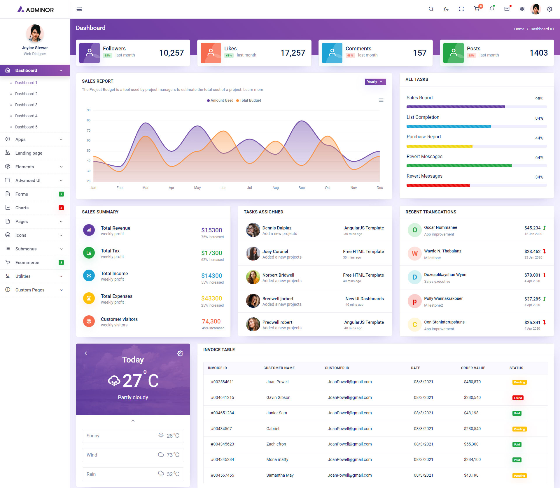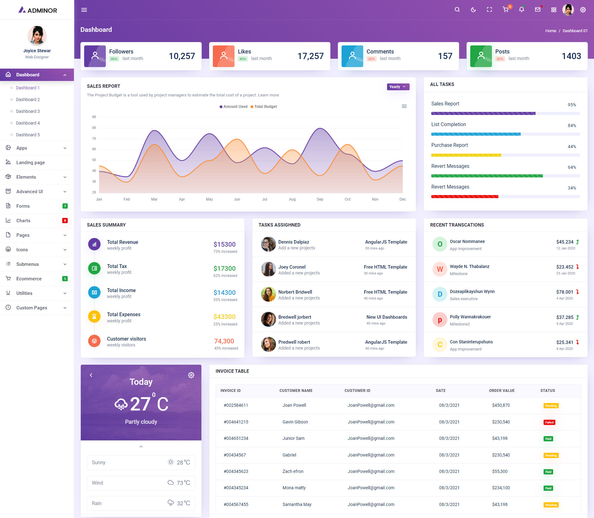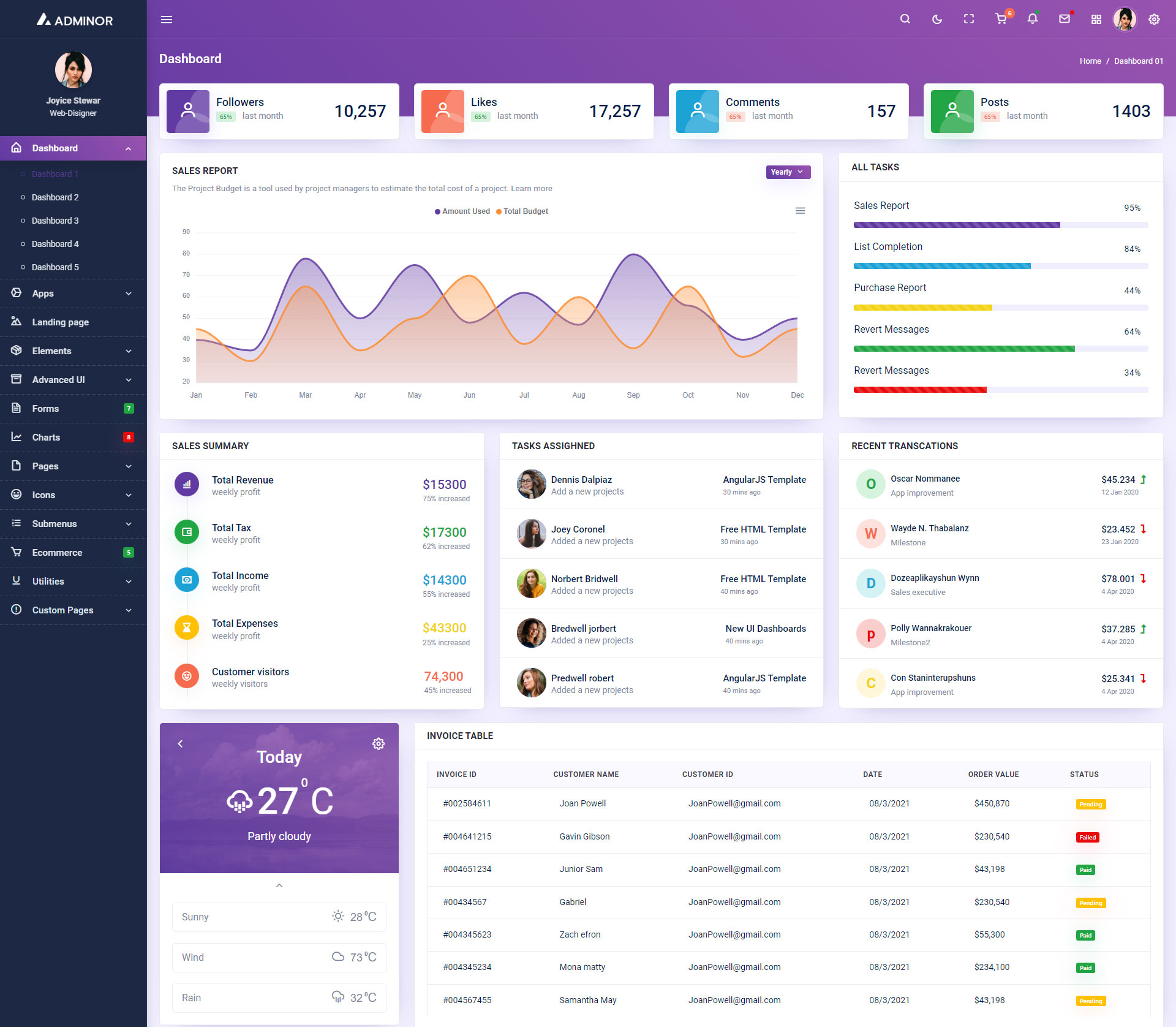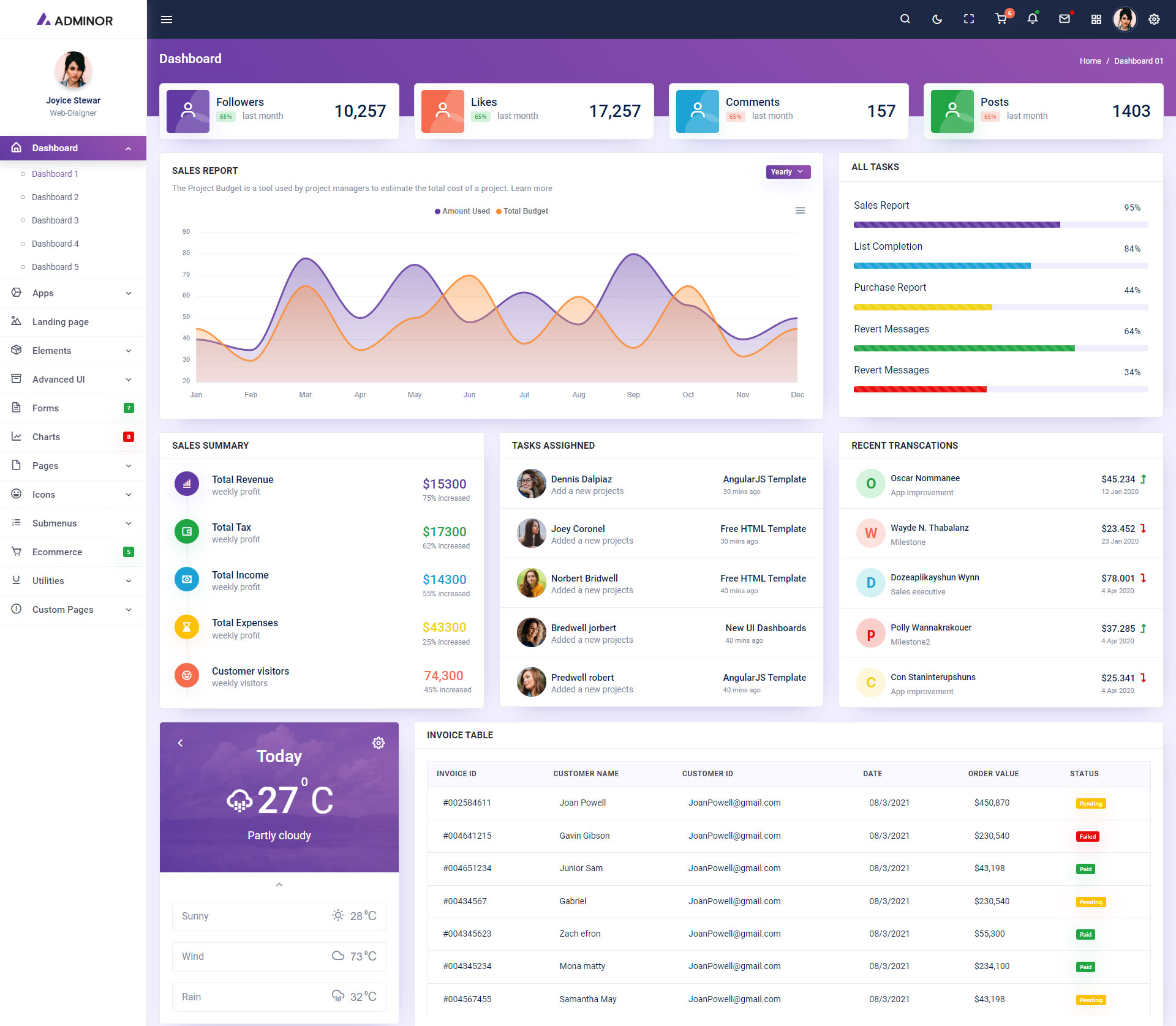Adminor - Django Premium Bootstrap 5 Admin & Dashboard Template boasts essential features such as design quality, compatibility with your front-end framework, responsiveness, ease of customization, comprehensive documentation, and dedicated support. Additionally, it includes integrated plugins and other supplementary features.