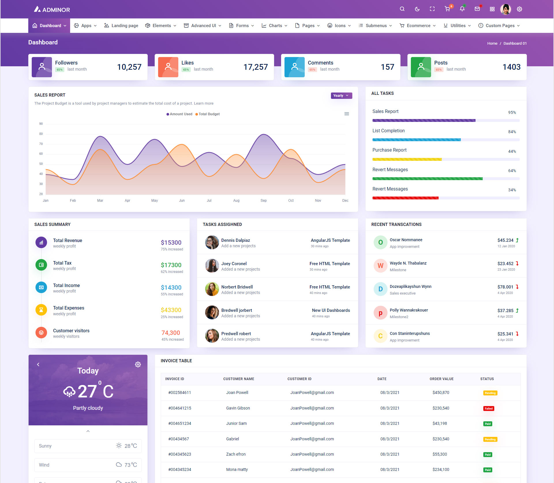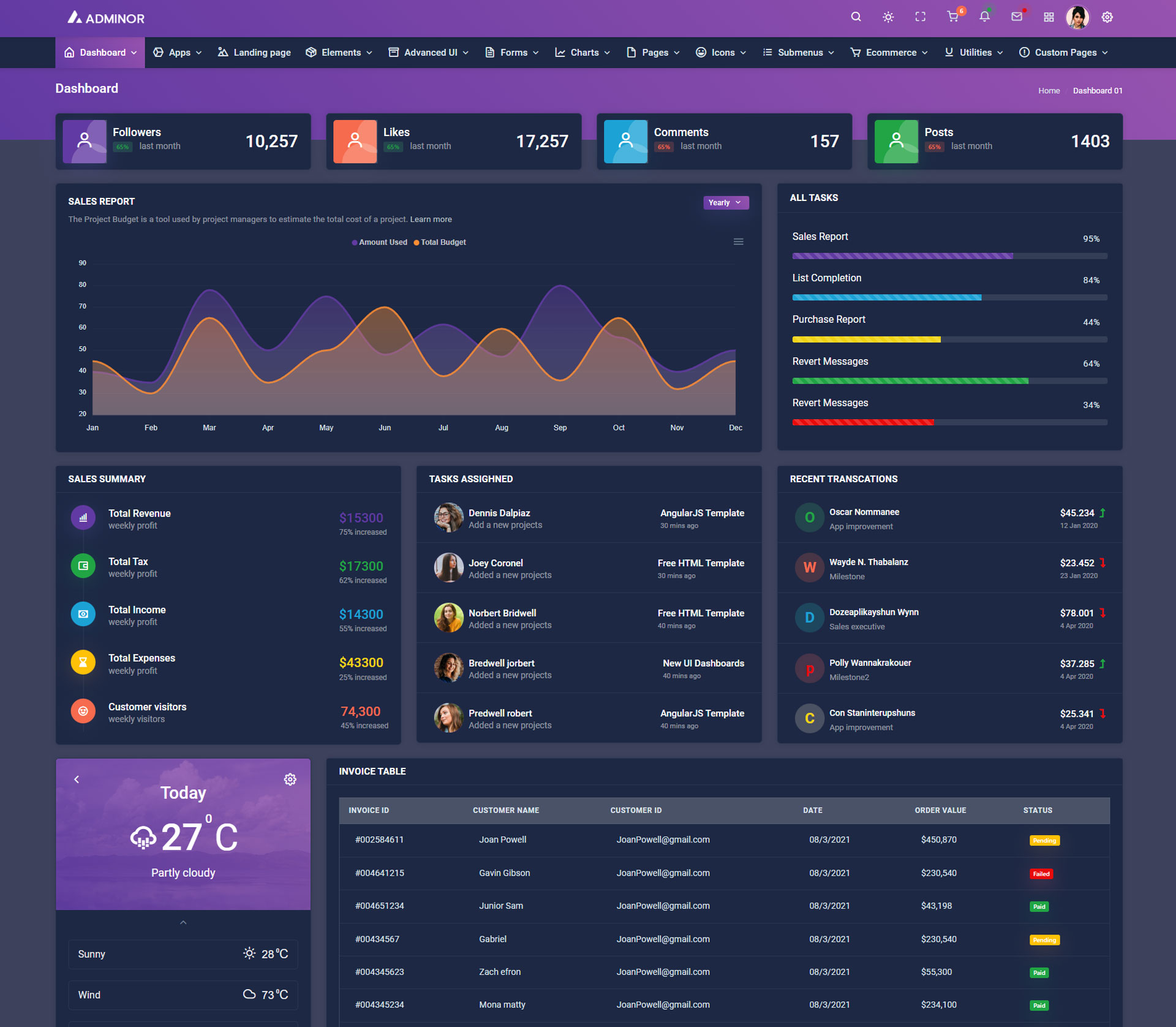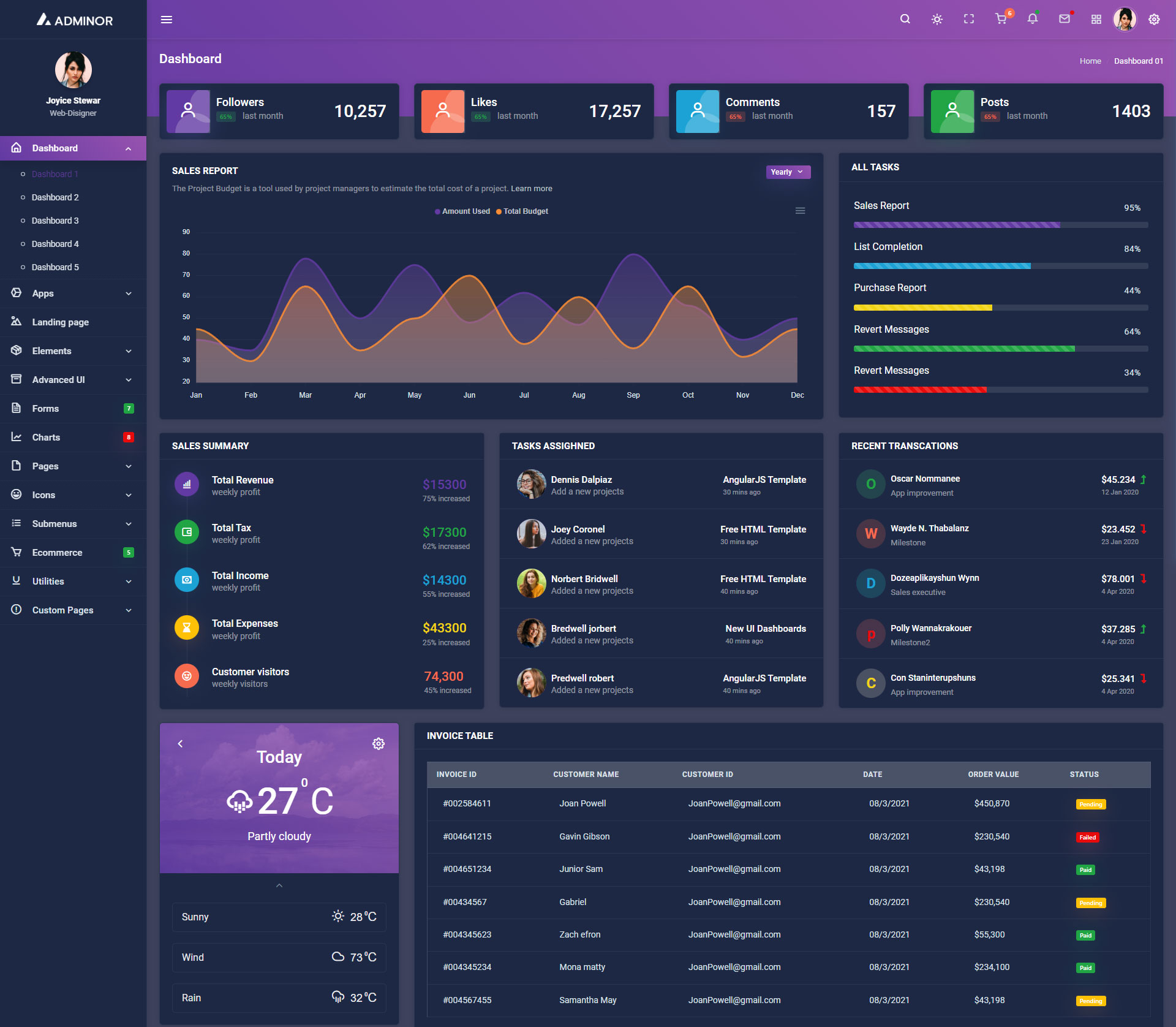 Adminor - Django Premium Bootstrap 5 Admin & Dashboard Template boasts essential features such as design quality, compatibility with your front-end framework, responsiveness, ease of customization, comprehensive documentation, and dedicated support. Additionally, it includes integrated plugins and other supplementary features.
